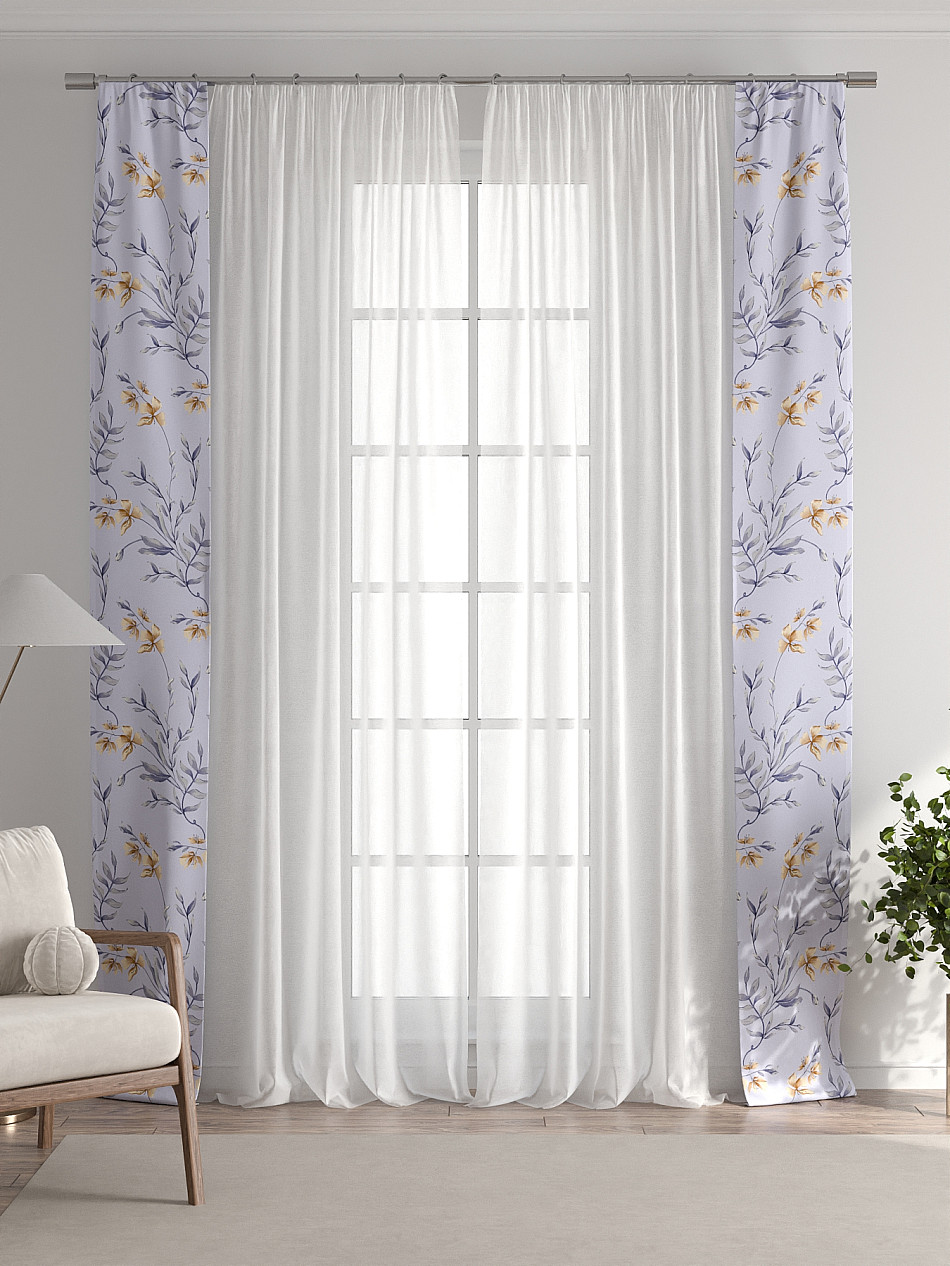 Представляем вам абсолютно новый подход к оформлению окна! Наш комплект белого тюля с узкими цветными шторами-подхватами станет идеальным решением для тех, кто любит, чтобы в комнате было светло и при этом хочет добавить цветовой акцент в интерьер комнаты.