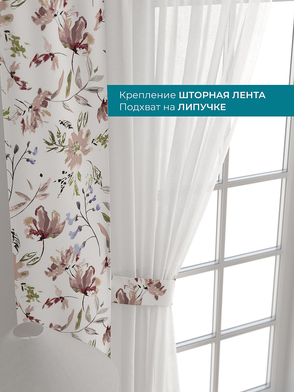 На высоте 125 см. пришит подхват (ширина 10 см.), который позволяет легко зафиксировать тюль или шторы в нужном положении при помощи липучки.