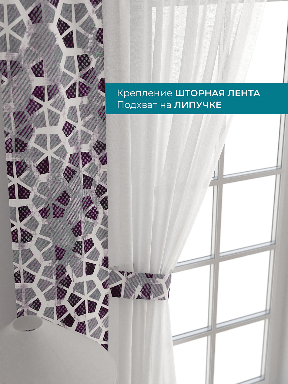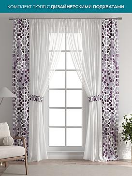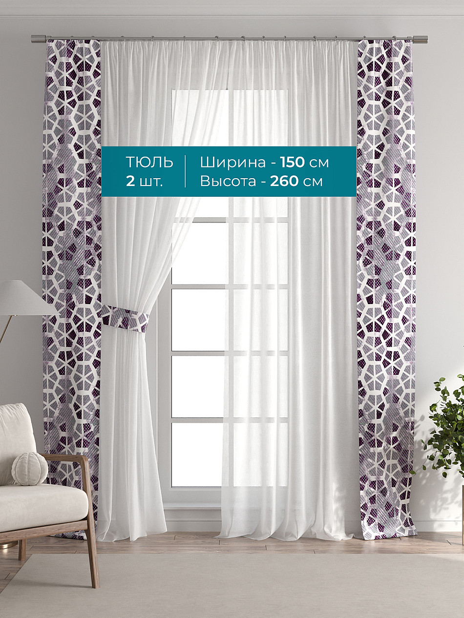 Декоративные подхваты 38х260 см — 2 шт.; Тюль 150х260 см — 2 шт. ( Изменить высоту) Крепление: шторная лента (крючки), кулиска Подробнее