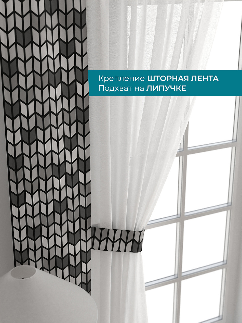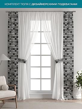Декоративные подхваты 38х260 см — 2 шт.; Тюль 150х260 см — 2 шт. ( Изменить высоту) Крепление: шторная лента (крючки), кулиска Подробнее