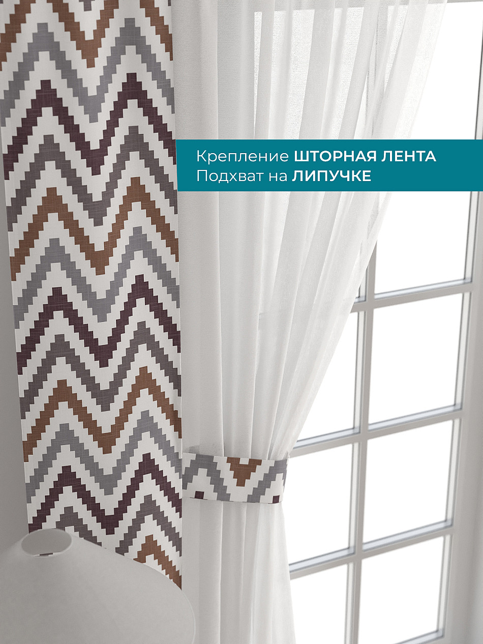 Декоративные подхваты 38х260 см — 2 шт.; Тюль 150х260 см — 2 шт. ( Изменить высоту) Крепление: шторная лента (крючки), кулиска Подробнее