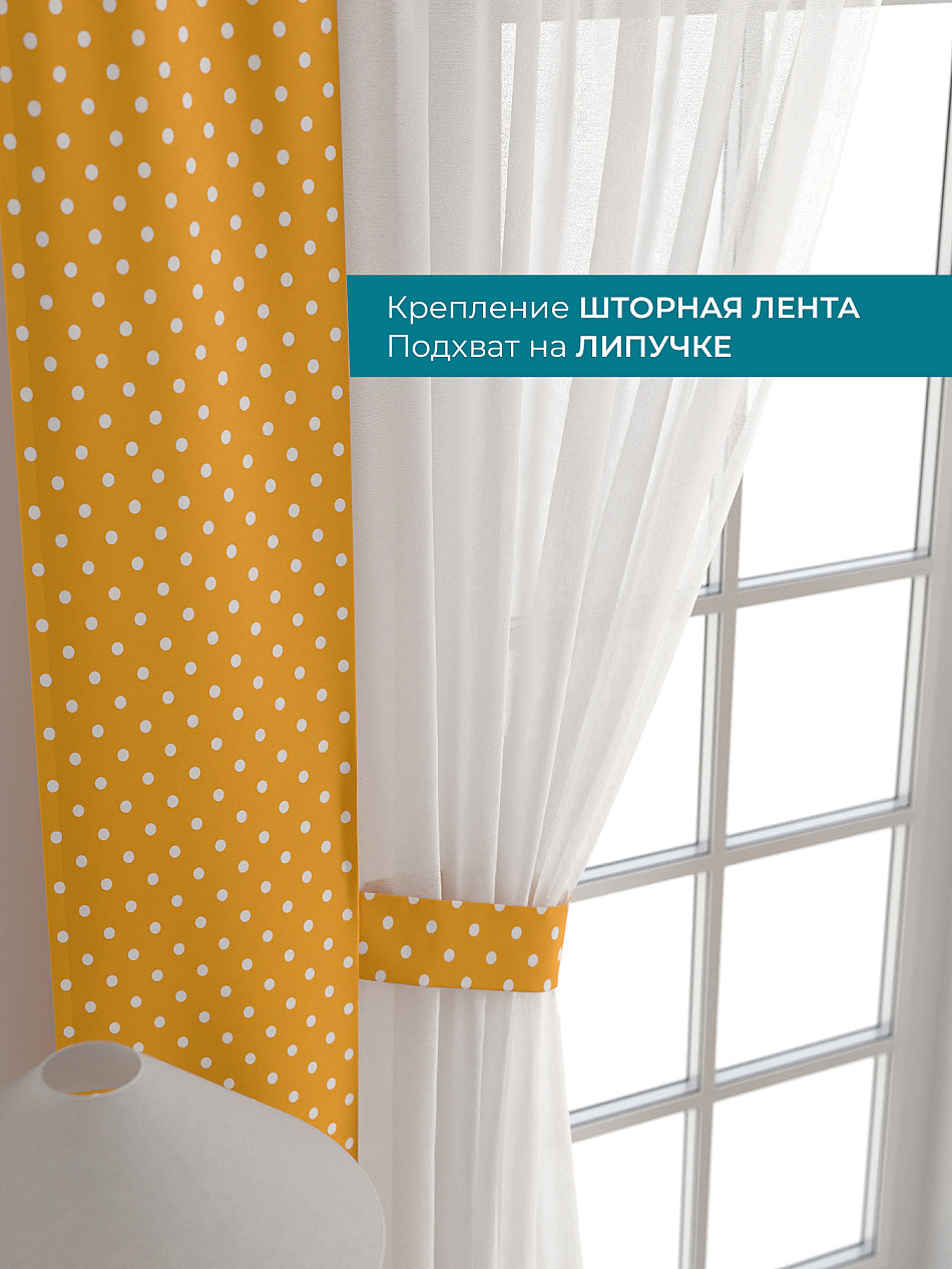 На высоте 125 см. пришит подхват (ширина 10 см.), который позволяет легко зафиксировать тюль или шторы в нужном положении при помощи липучки.