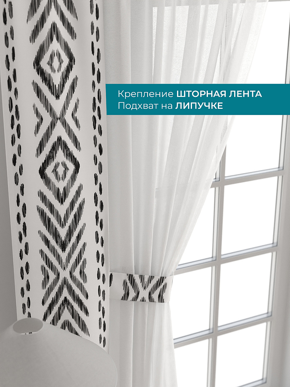На высоте 125 см. пришит подхват (ширина 10 см.), который позволяет легко зафиксировать тюль или шторы в нужном положении при помощи липучки.