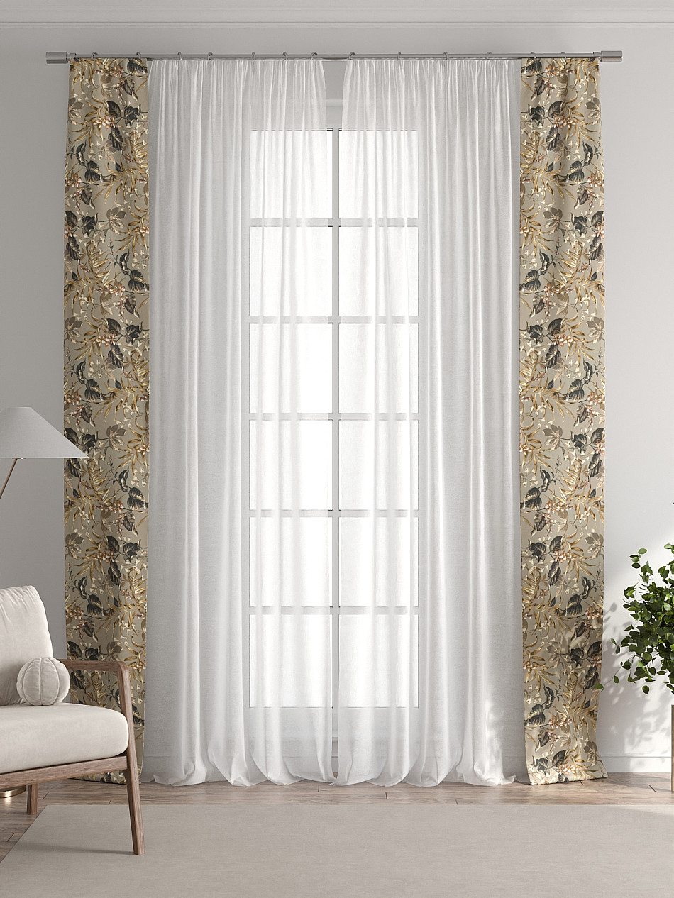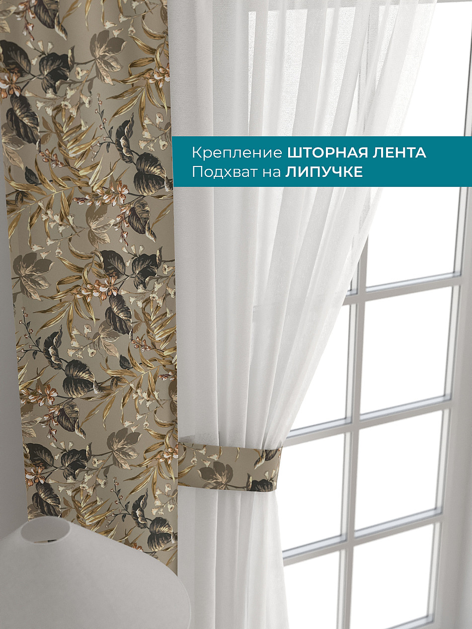 Декоративные подхваты 38х260 см — 2 шт.; Тюль 150х260 см — 2 шт. ( Изменить высоту) Крепление: шторная лента (крючки), кулиска Подробнее