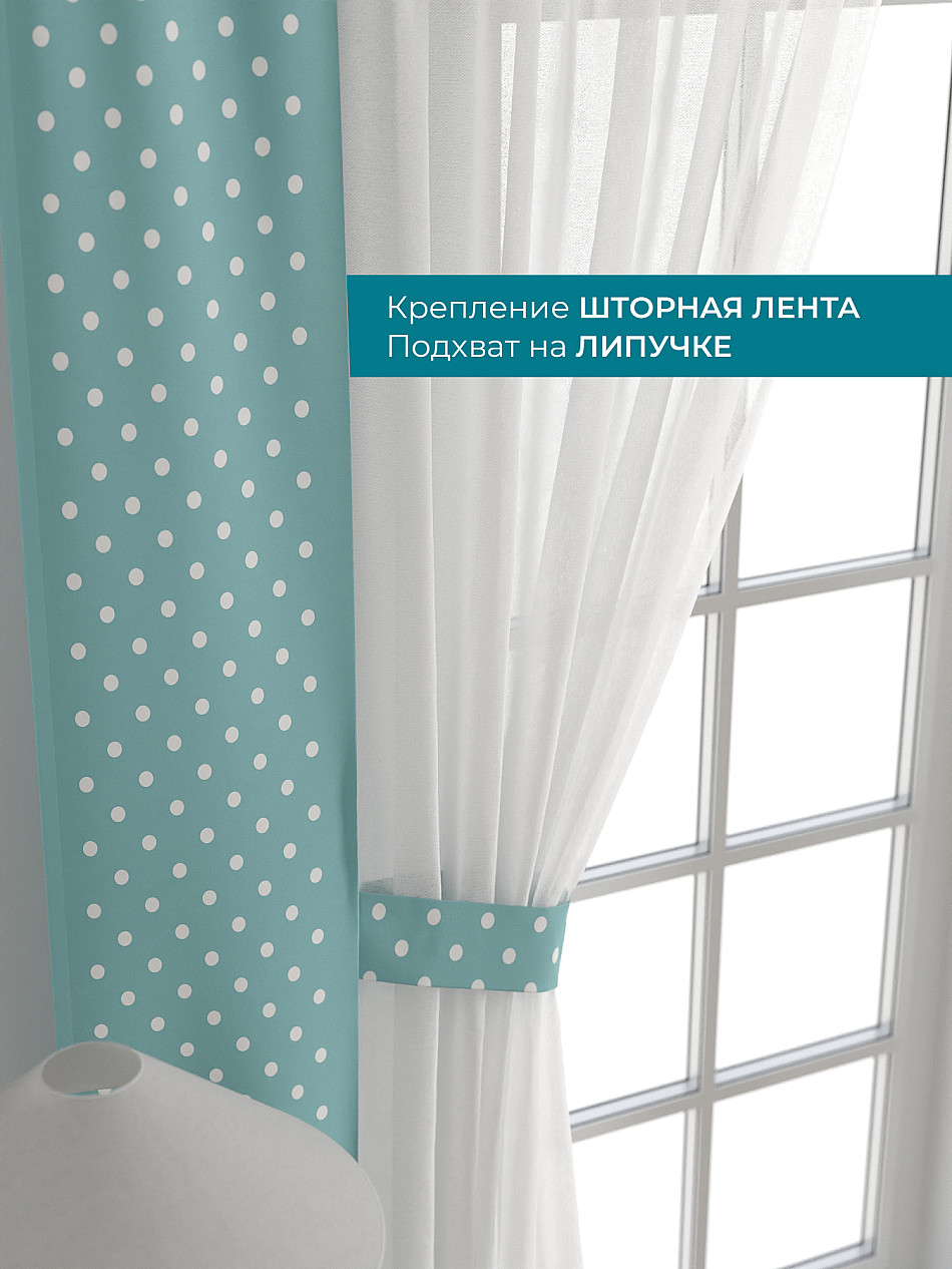 На высоте 125 см. пришит подхват (ширина 10 см.), который позволяет легко зафиксировать тюль или шторы в нужном положении при помощи липучки.