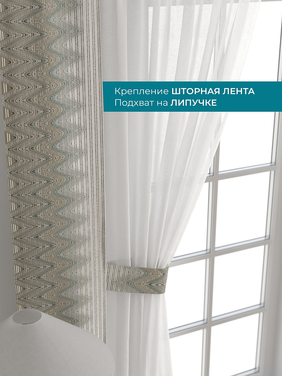 Декоративные подхваты 38х260 см — 2 шт.; Тюль 150х260 см — 2 шт. ( Изменить высоту) Крепление: шторная лента (крючки), кулиска Подробнее
