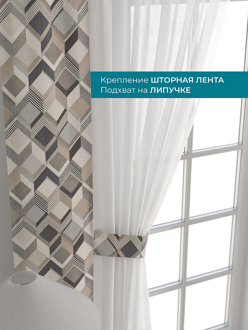Декоративные подхваты 38х260 см — 2 шт.; Тюль 150х260 см — 2 шт. ( Изменить высоту) Крепление: шторная лента (крючки), кулиска Подробнее