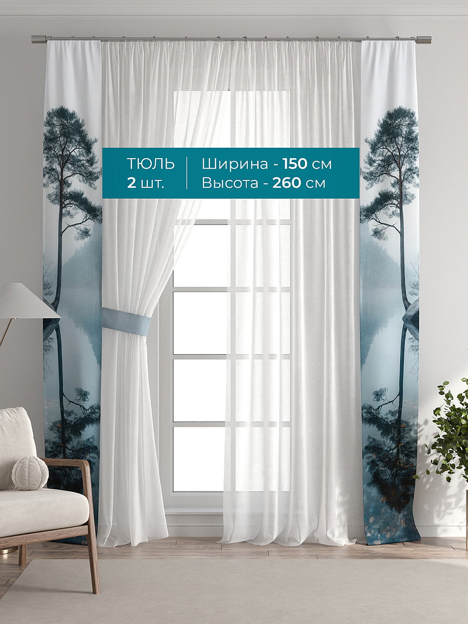 Декоративные подхваты 38х260 см — 2 шт.; Тюль 150х260 см — 2 шт. ( Изменить высоту) Крепление: шторная лента (крючки), кулиска Подробнее