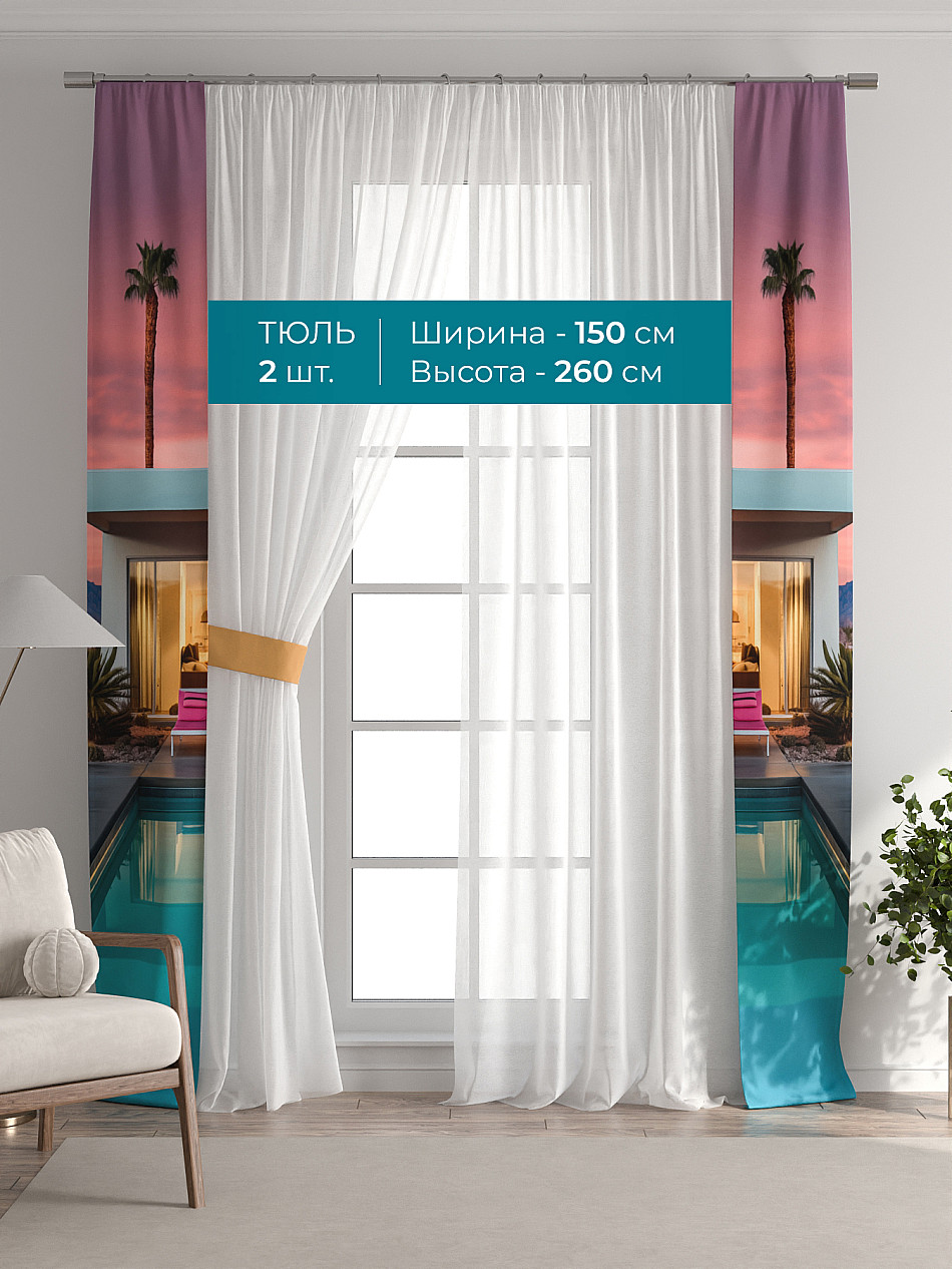 Декоративные подхваты 38х260 см — 2 шт.; Тюль 150х260 см — 2 шт. ( Изменить высоту) Крепление: шторная лента (крючки), кулиска Подробнее