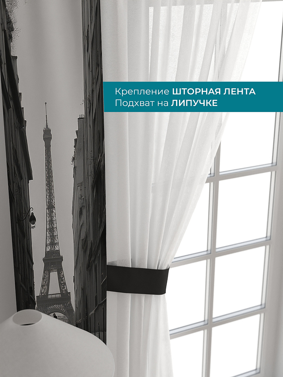 Декоративные подхваты 38х260 см — 2 шт.; Тюль 150х260 см — 2 шт. ( Изменить высоту) Крепление: шторная лента (крючки), кулиска Подробнее