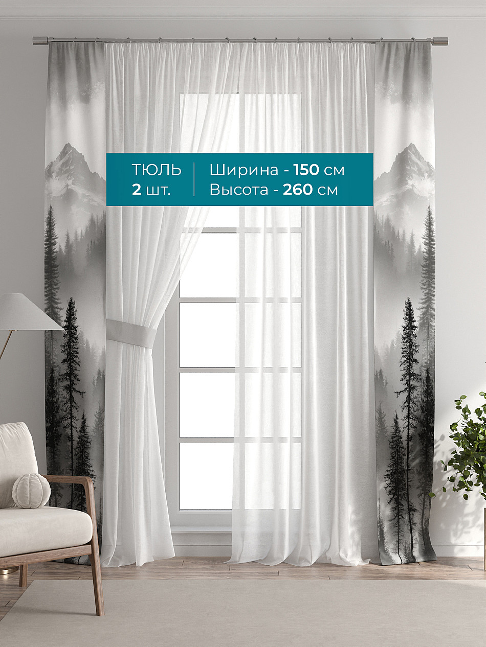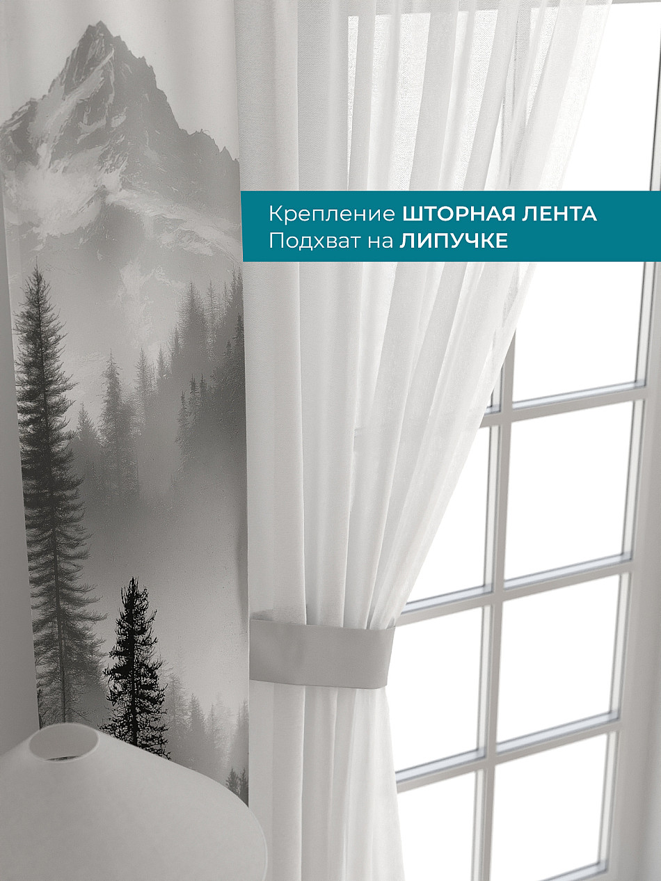 Декоративные подхваты 38х260 см — 2 шт.; Тюль 150х260 см — 2 шт. ( Изменить высоту) Крепление: шторная лента (крючки), кулиска Подробнее
