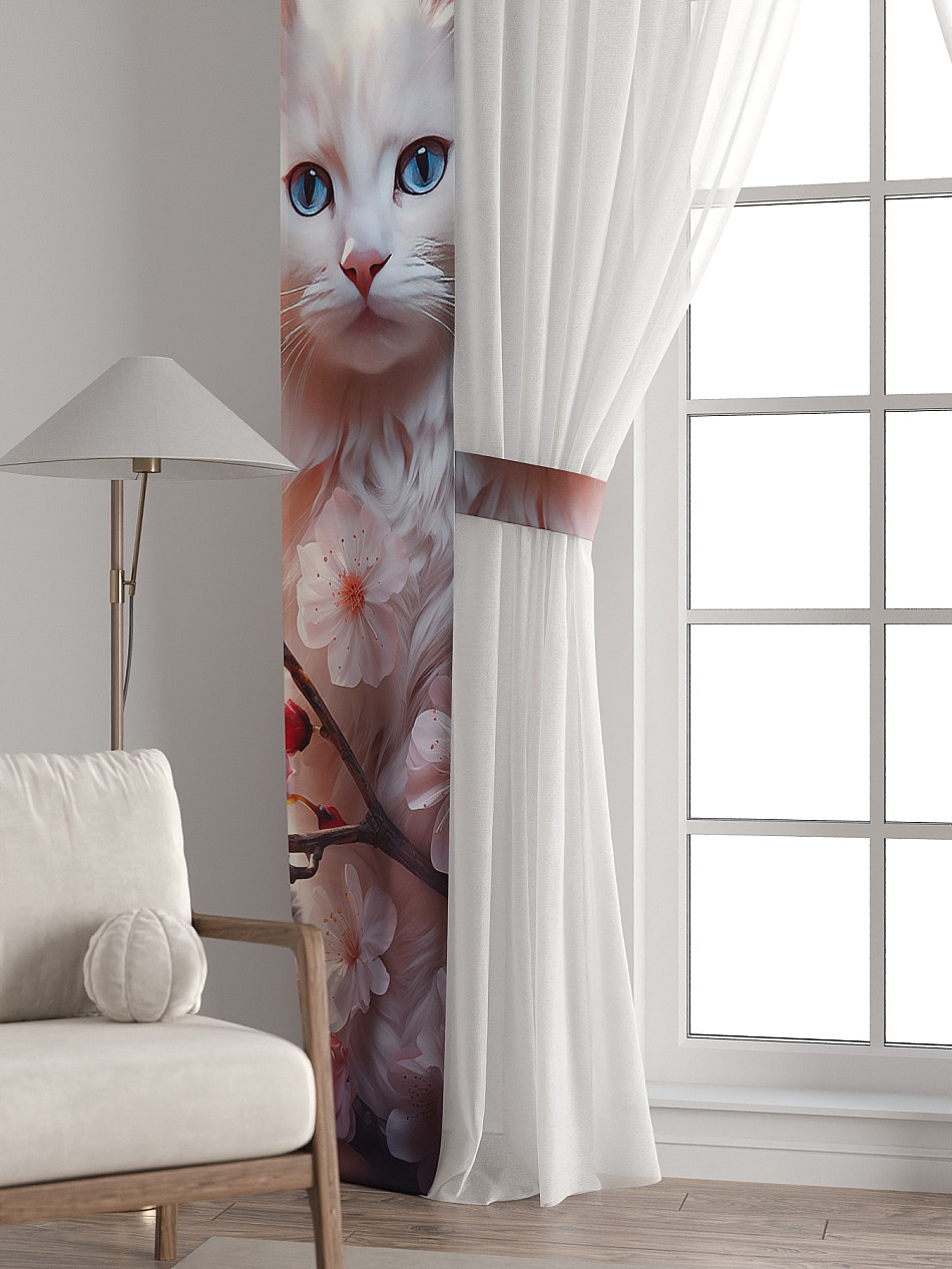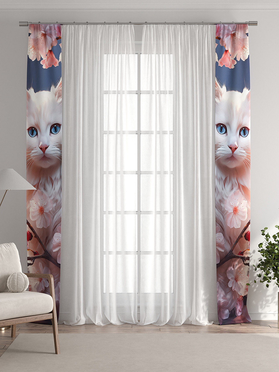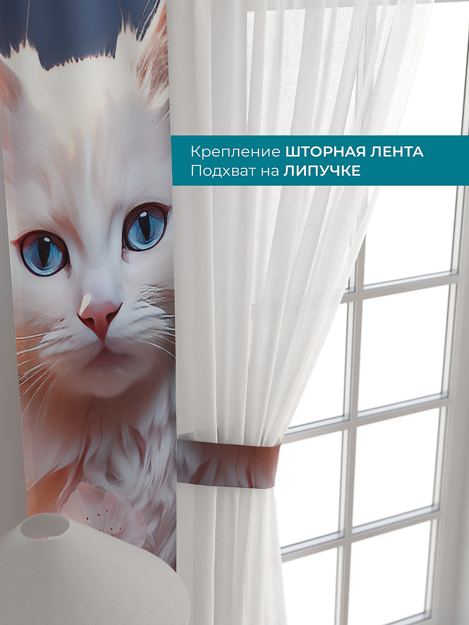 На высоте 125 см. пришит подхват (ширина 10 см.), который позволяет легко зафиксировать тюль или шторы в нужном положении при помощи липучки.