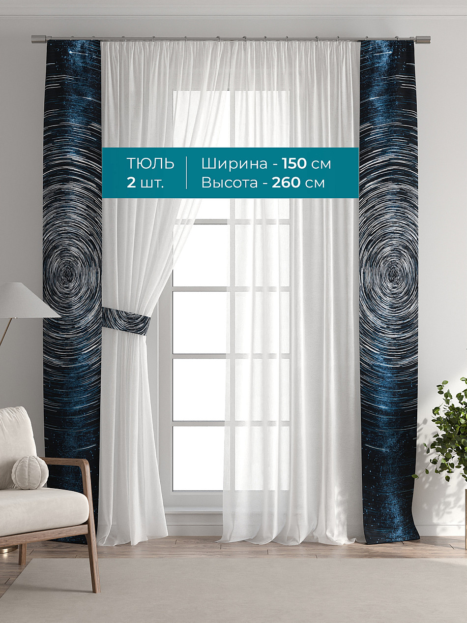 Декоративные подхваты 38х260 см — 2 шт.; Тюль 150х260 см — 2 шт. ( Изменить высоту) Крепление: шторная лента (крючки), кулиска Подробнее