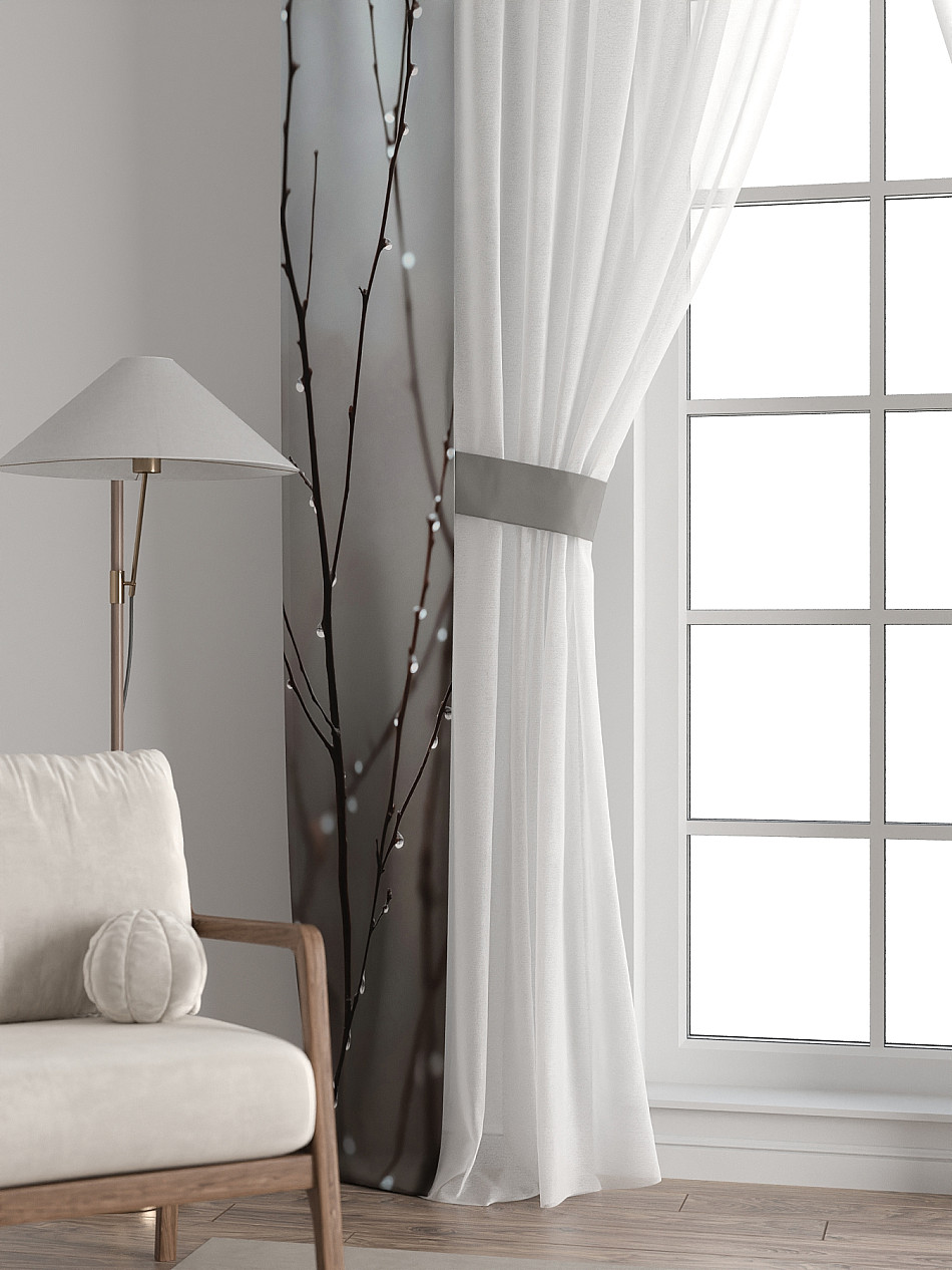 Представляем вам абсолютно новый подход к оформлению окна! Наш комплект белого тюля с узкими цветными шторами-подхватами станет идеальным решением для тех, кто любит, чтобы в комнате было светло и при этом хочет добавить цветовой акцент в интерьер комнаты.