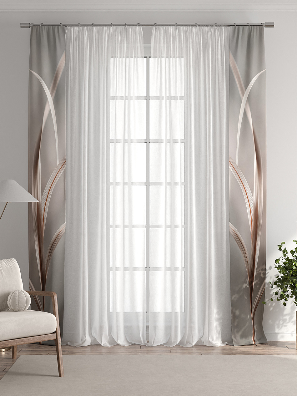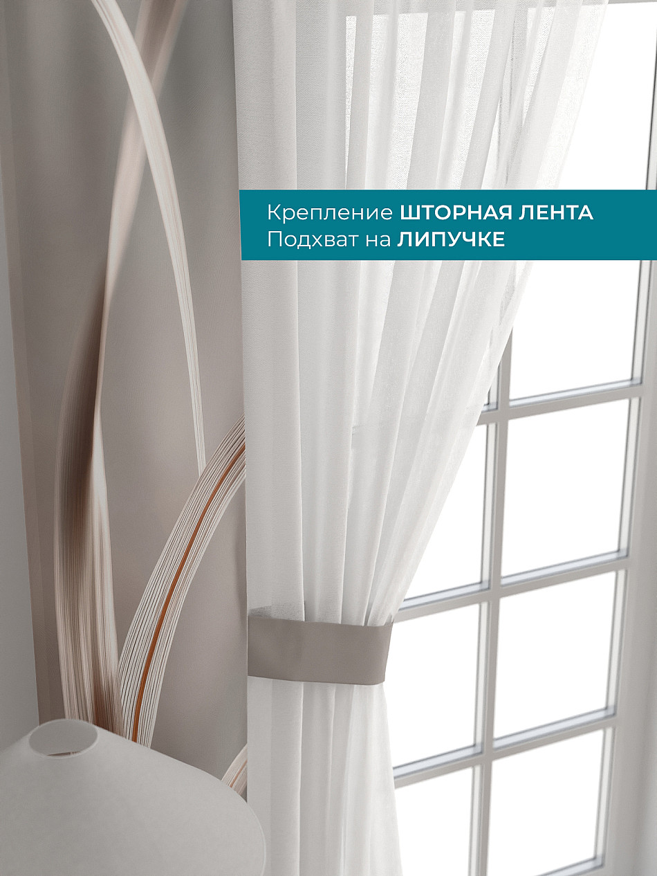 Декоративные подхваты 38х260 см — 2 шт.; Тюль 150х260 см — 2 шт. ( Изменить высоту) Крепление: шторная лента (крючки), кулиска Подробнее