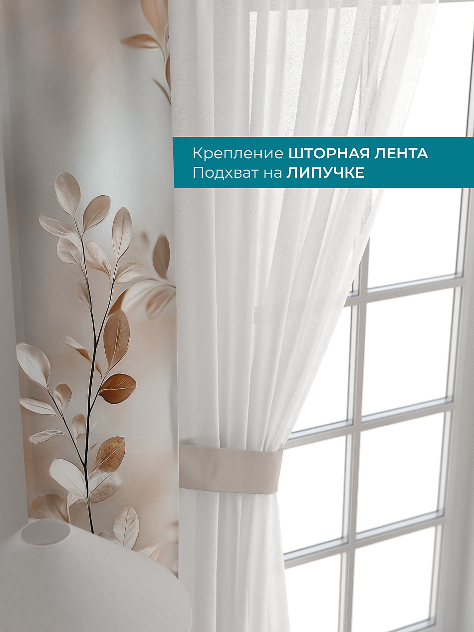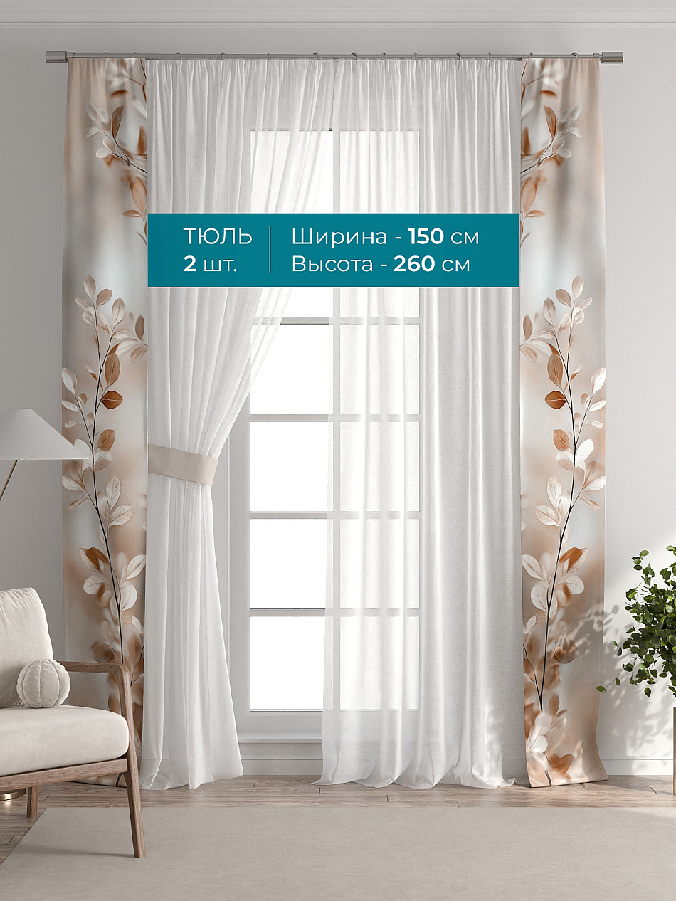 Декоративные подхваты 38х260 см — 2 шт.; Тюль 150х260 см — 2 шт. ( Изменить высоту) Крепление: шторная лента (крючки), кулиска Подробнее