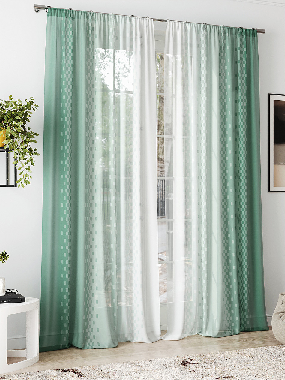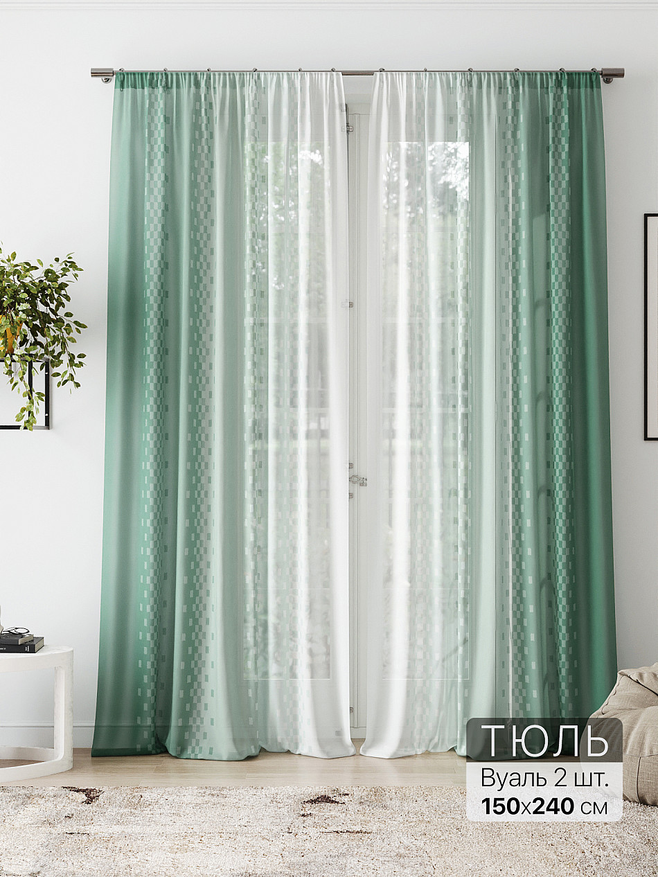 очень красивый тюль, в натуральном виде зеленый цвет более нежный, сама штора белоснежная. пошив очень аккуратный, шторная лента плотная. покупкой довольна -