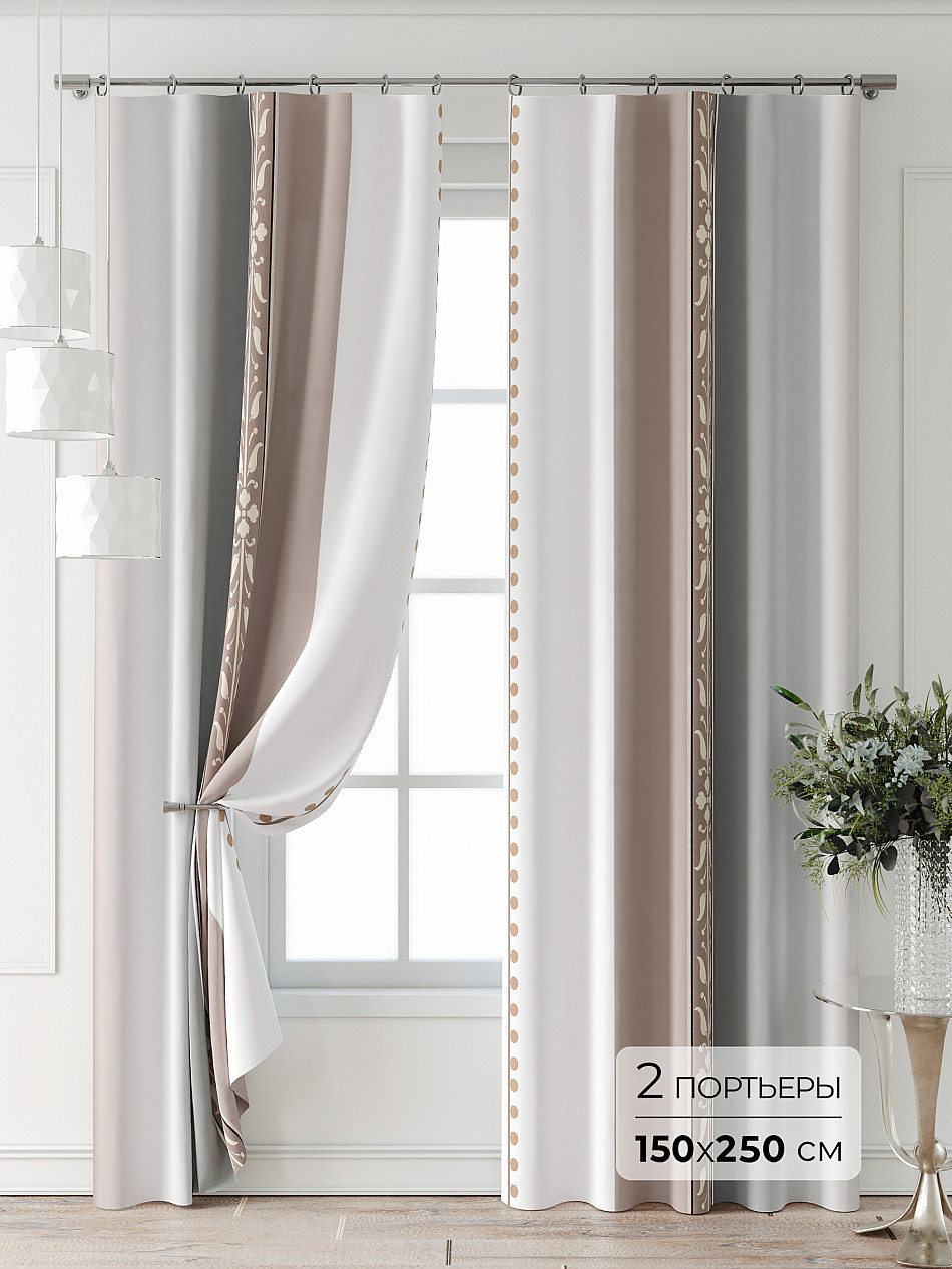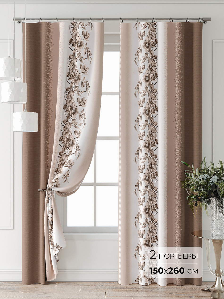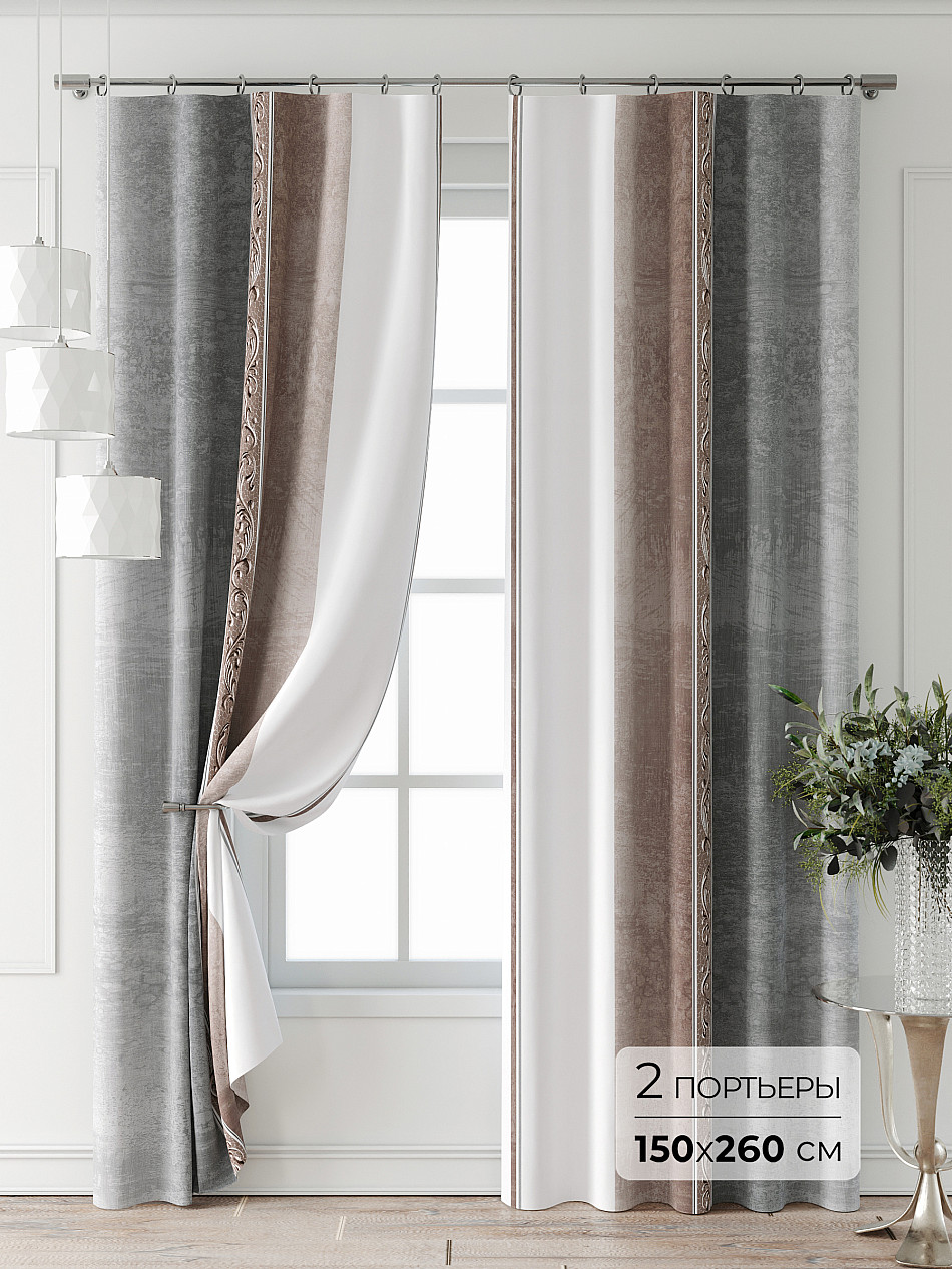 Спасибо за портьеры Бронис(бежево-серый)Цвет полностью совпадает с заявленным!Все сшито качественно.Ткань чудесная для портьер!Спасибо менеджерам по работе с Клиентами-внимательные,профессиональные!Небольшой минус-каждая портьера на 5см меньше заявленных300см.А в остальном,все хорошо -