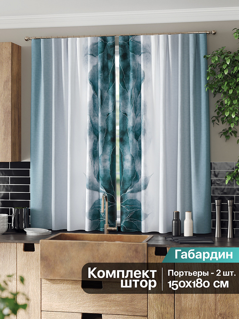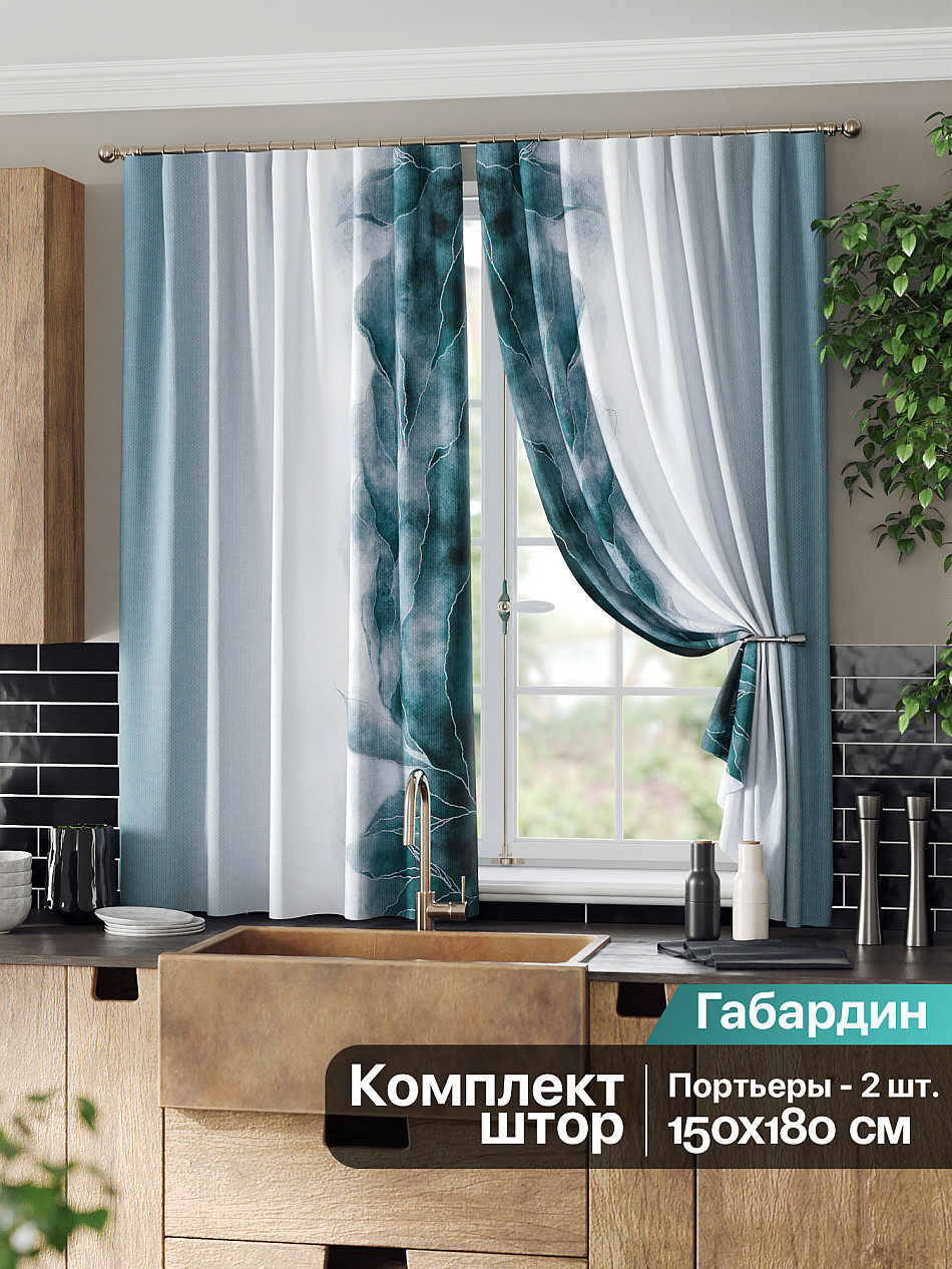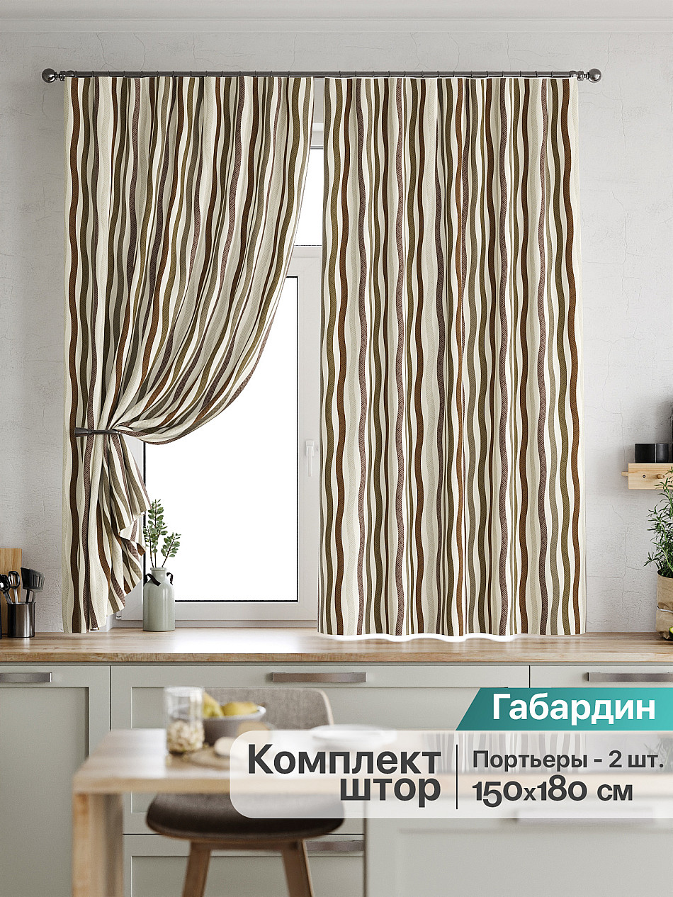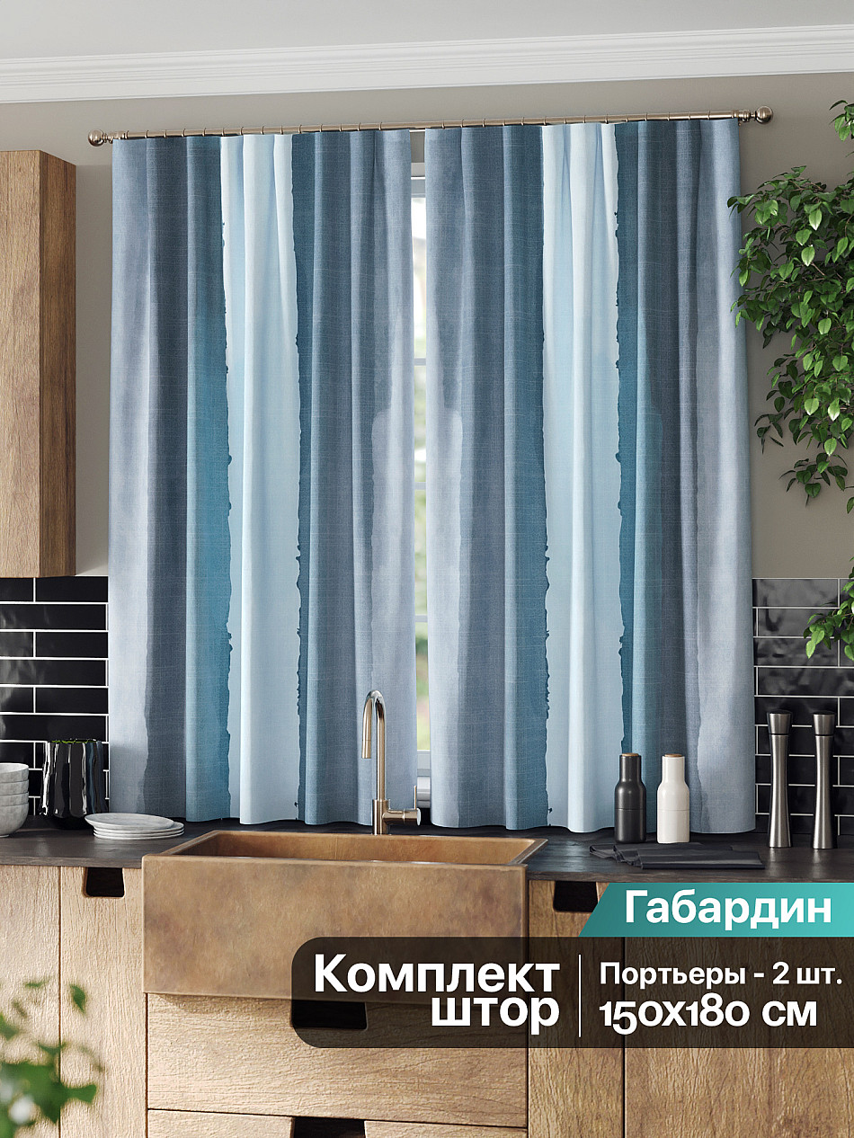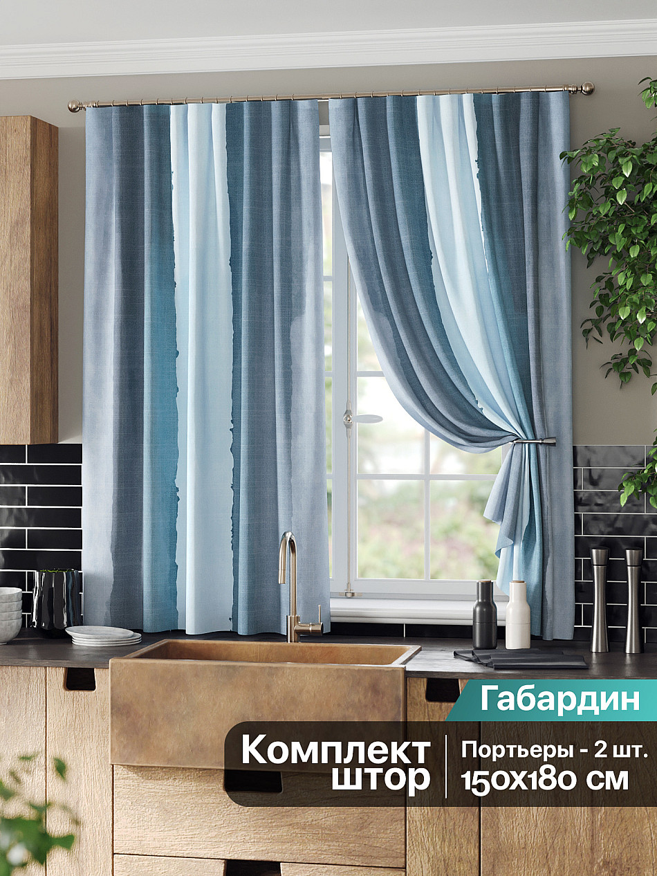 Очень стильные шторы. Полностью соответствуют фото и описанию. Высота по длинной стороне 90 см, высота по короткой центральной стороне 52 см. Штора в количестве 2 шт. Ткань габардин, полностью соответствует описанию. Мне идеально подошёл комплект по цвету. Вообще интересное решение для окон. Нравится, что именно 2 шторы, которые можно раздвинуть. Очень хорошо драпируется шторной лентой. Дизайнерам спасибо. -