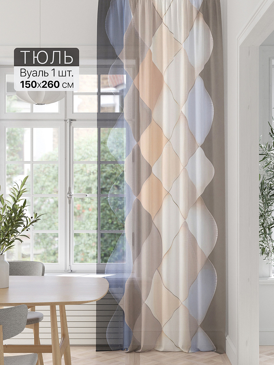 Очень понравился тюль. Благородная полоска, неяркие цвета, чуть приглушенные. Тюль воздушный, очень прозрачный. Качество исполнения на высоте. Спасибо магазину. -