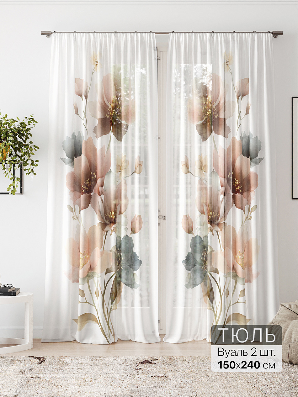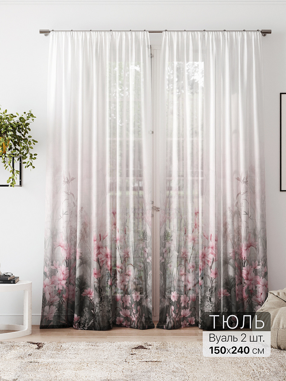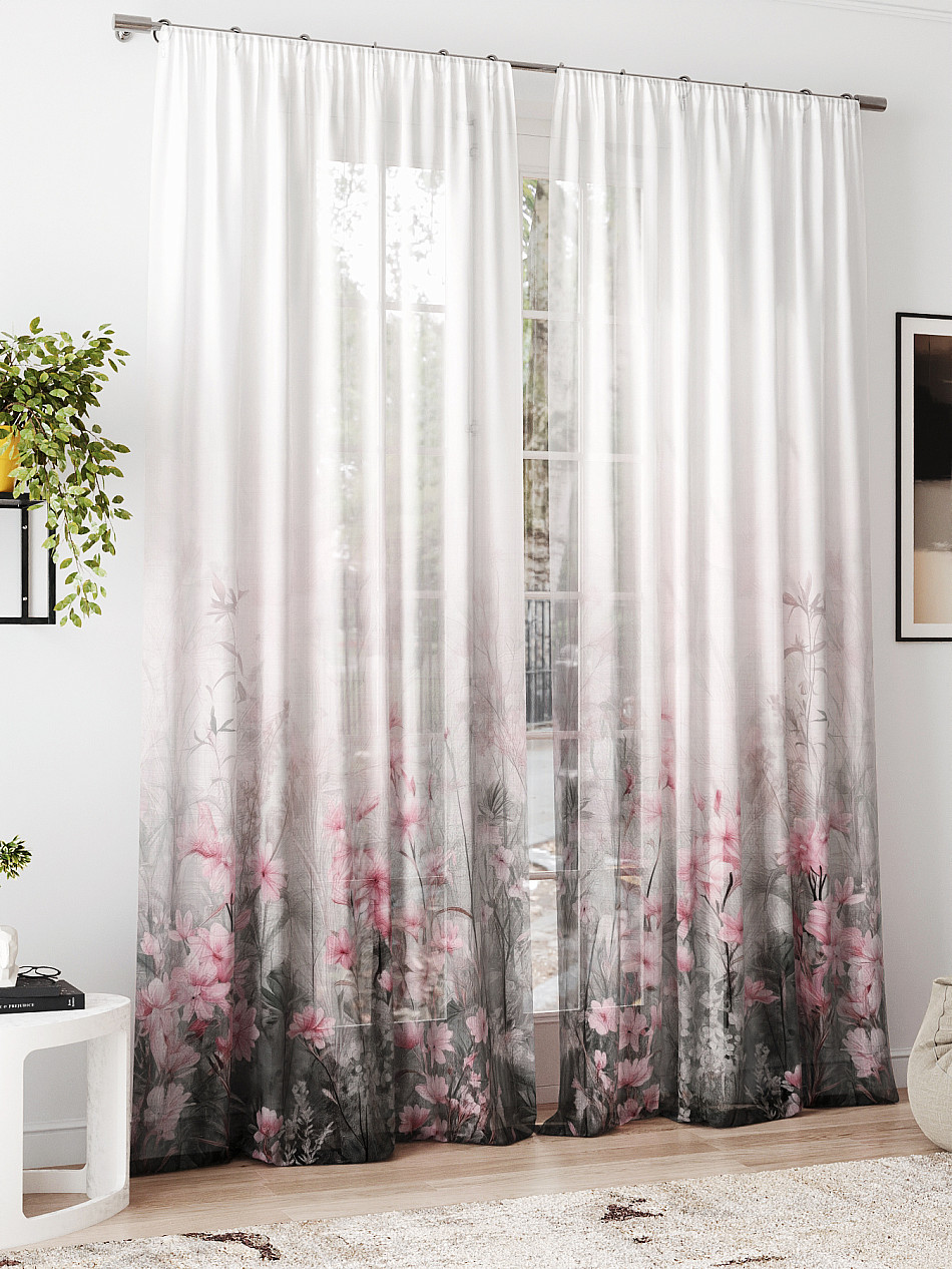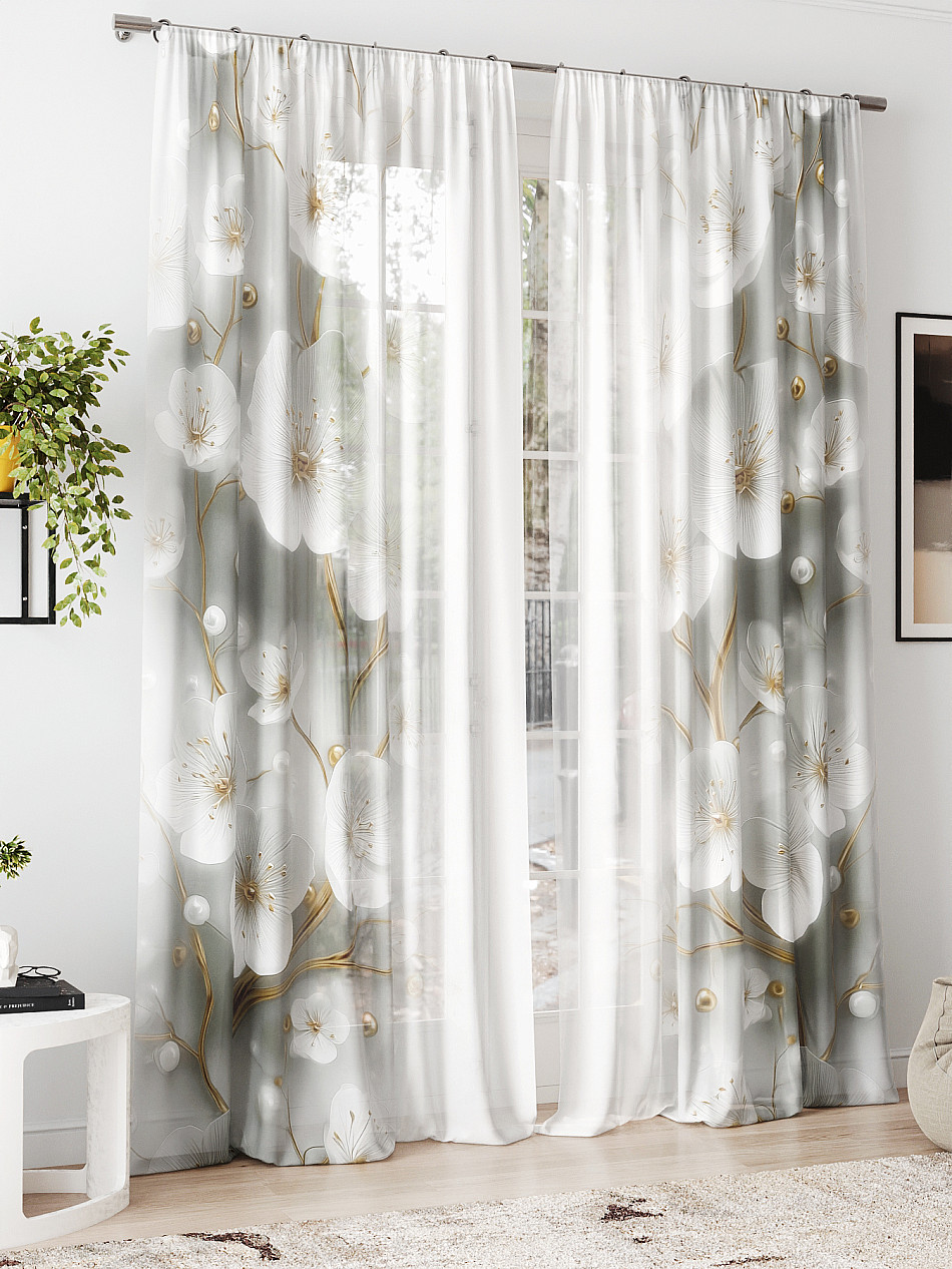 Сам тюль очень красивый,фон серый,розы белоснежные.Пропускает очень много света.И пошив качественный. -
