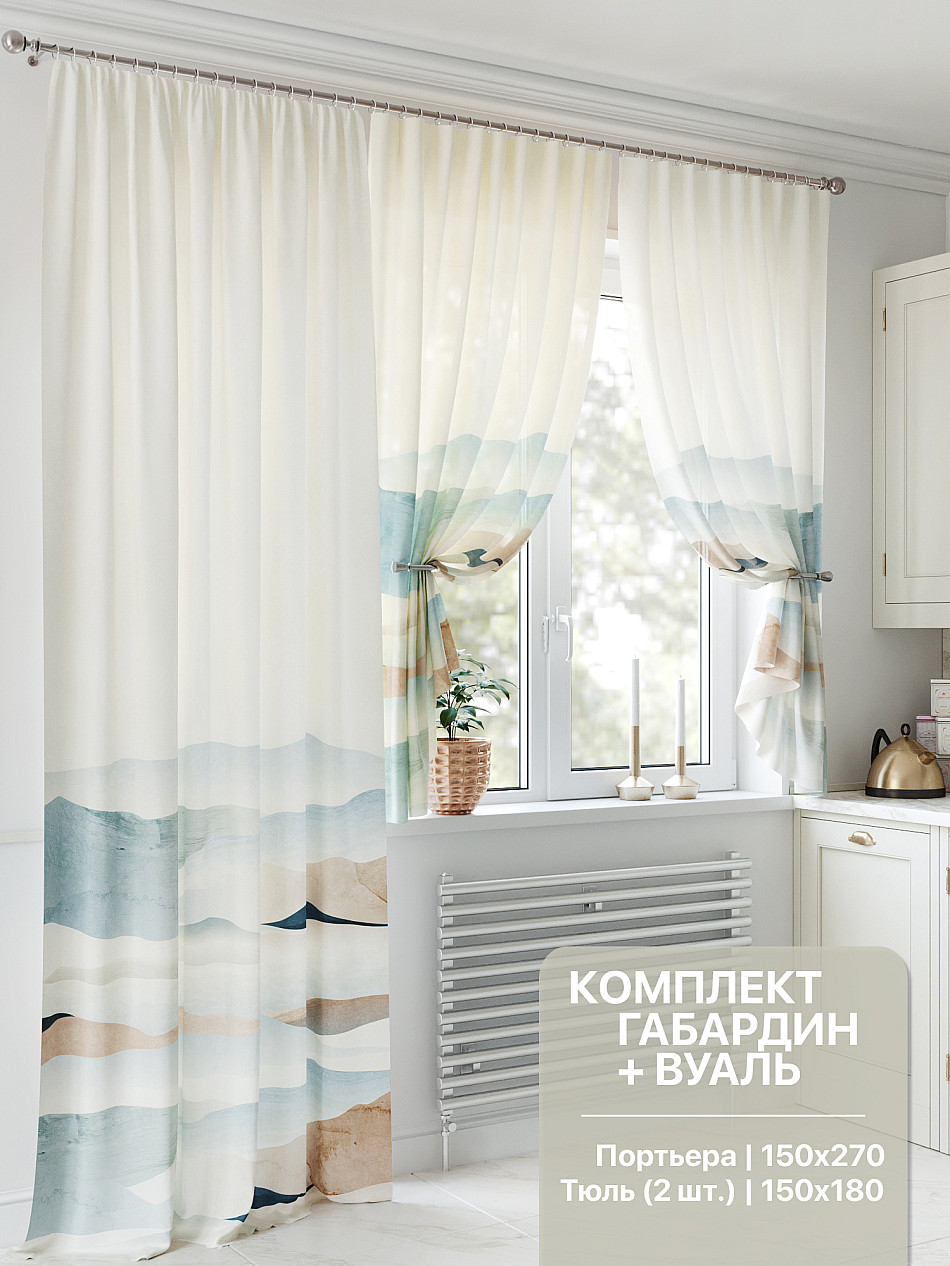 В фоне больше зелено-голубого, чем бежевого, как кажется на фото. Нам этот вариант даже больше подошел. Портьера не плотная ( не рапс). -