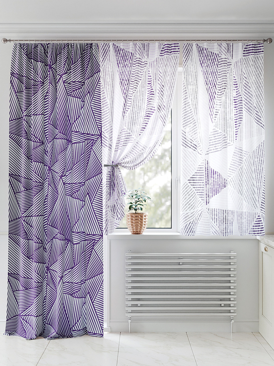 Очень стильные шторы. Полностью соответствуют фото и описанию. Высота по длинной стороне 90 см, высота по короткой центральной стороне 52 см. Штора в количестве 2 шт. Ткань габардин, полностью соответствует описанию. Мне идеально подошёл комплект по цвету. Вообще интересное решение для окон. Нравится, что именно 2 шторы, которые можно раздвинуть. Очень хорошо драпируется шторной лентой. Дизайнерам спасибо.