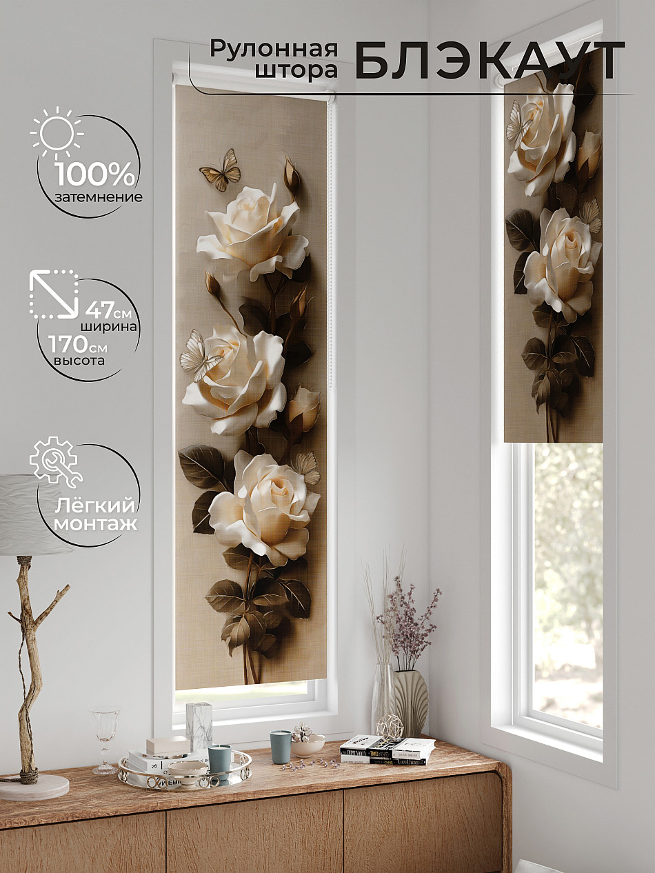 Измерьте размер окна в высоту и ширину. Решите, хотите ли вы, чтобы рулонные шторы были внутри оконной рамы или за ее пределами. Далее воспользуйтесь фильтрами, предоставленными на странице каталога, чтобы уточнить параметры рулонных штор на большие окна (размер представлен без учета креплений). У нас есть возможность фильтрации по ширине, высоте, цвету и другим характеристикам.