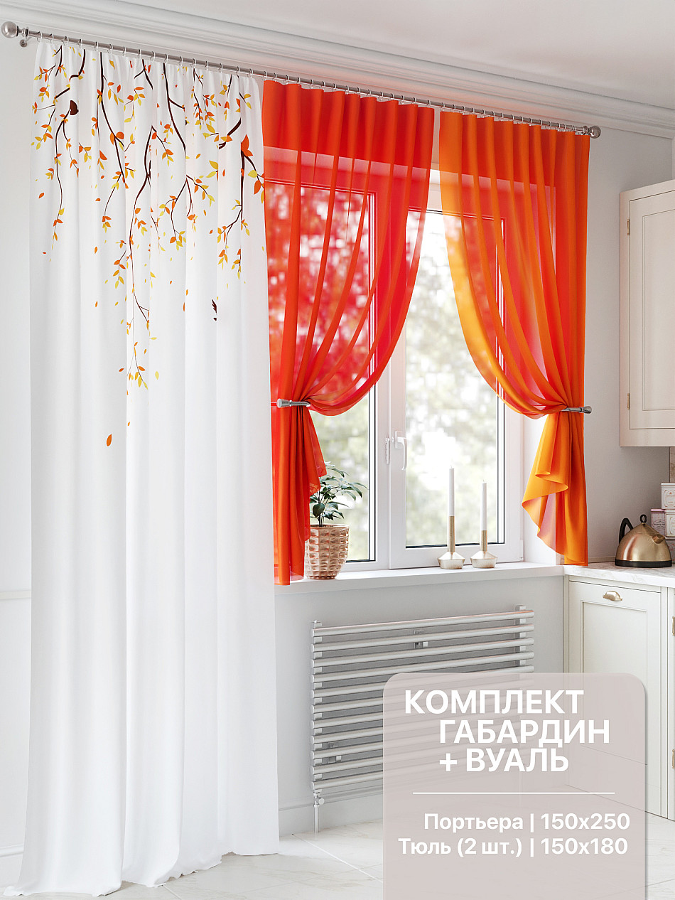 Очень понравился комплект.Пришлось дозаказать еще такую тюль ,чтобы было попышнее.Все вписалось и с обоями и с диваном.