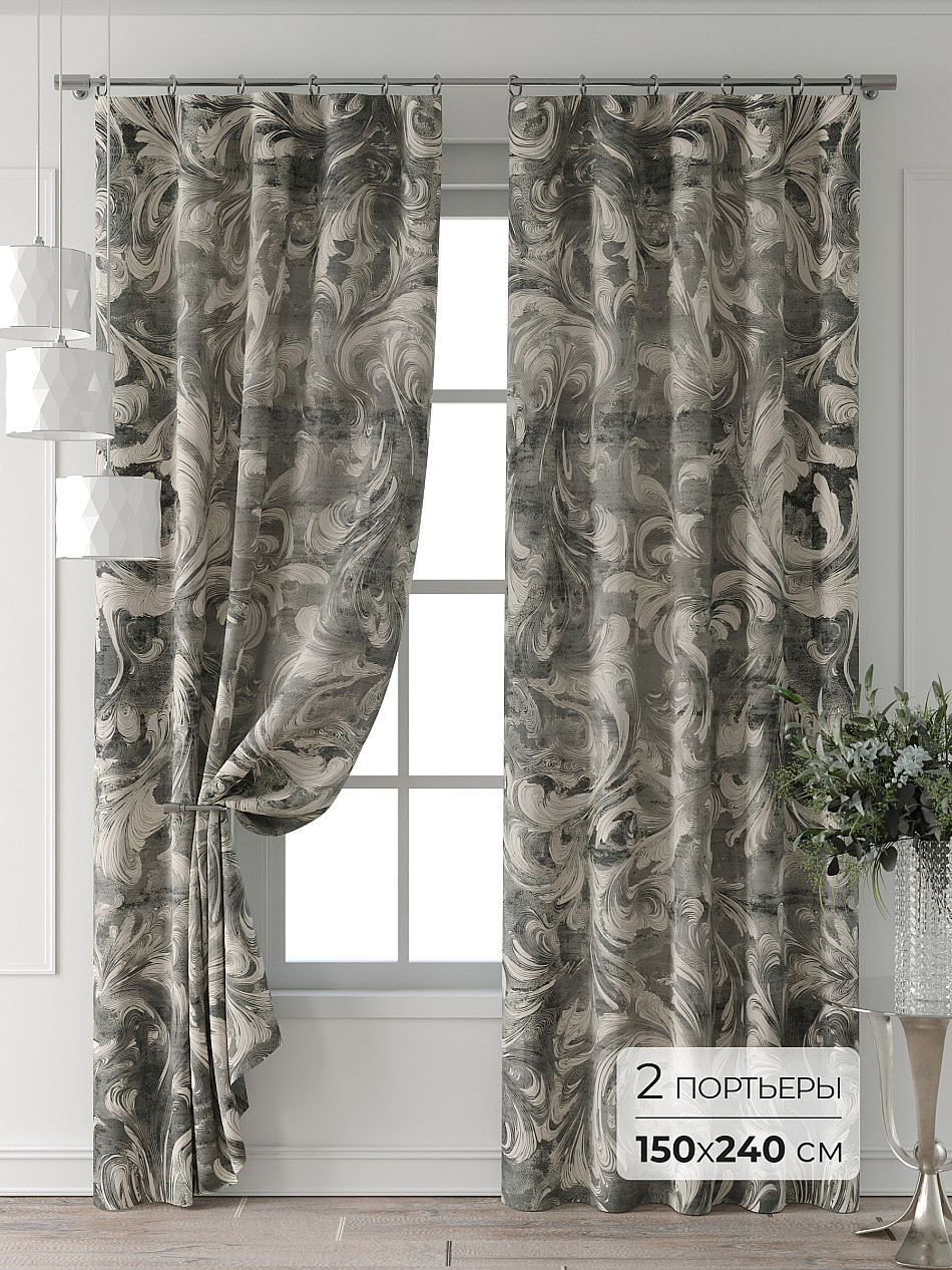 Шикарные шторы, очень понравился рисунок, в тон обоев зашли идеально. Брали в паре с тюлью "Кейта". Заказывали подшив, всё сделали точно по нужным размерам. Свет не пропускают, материал плотный и качественный. -