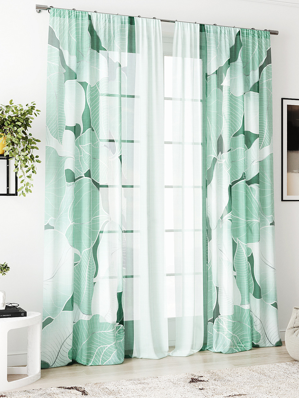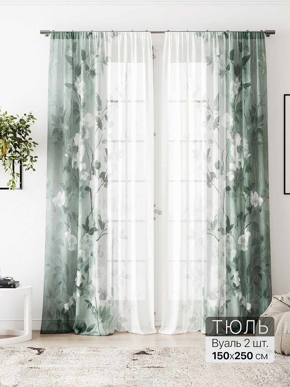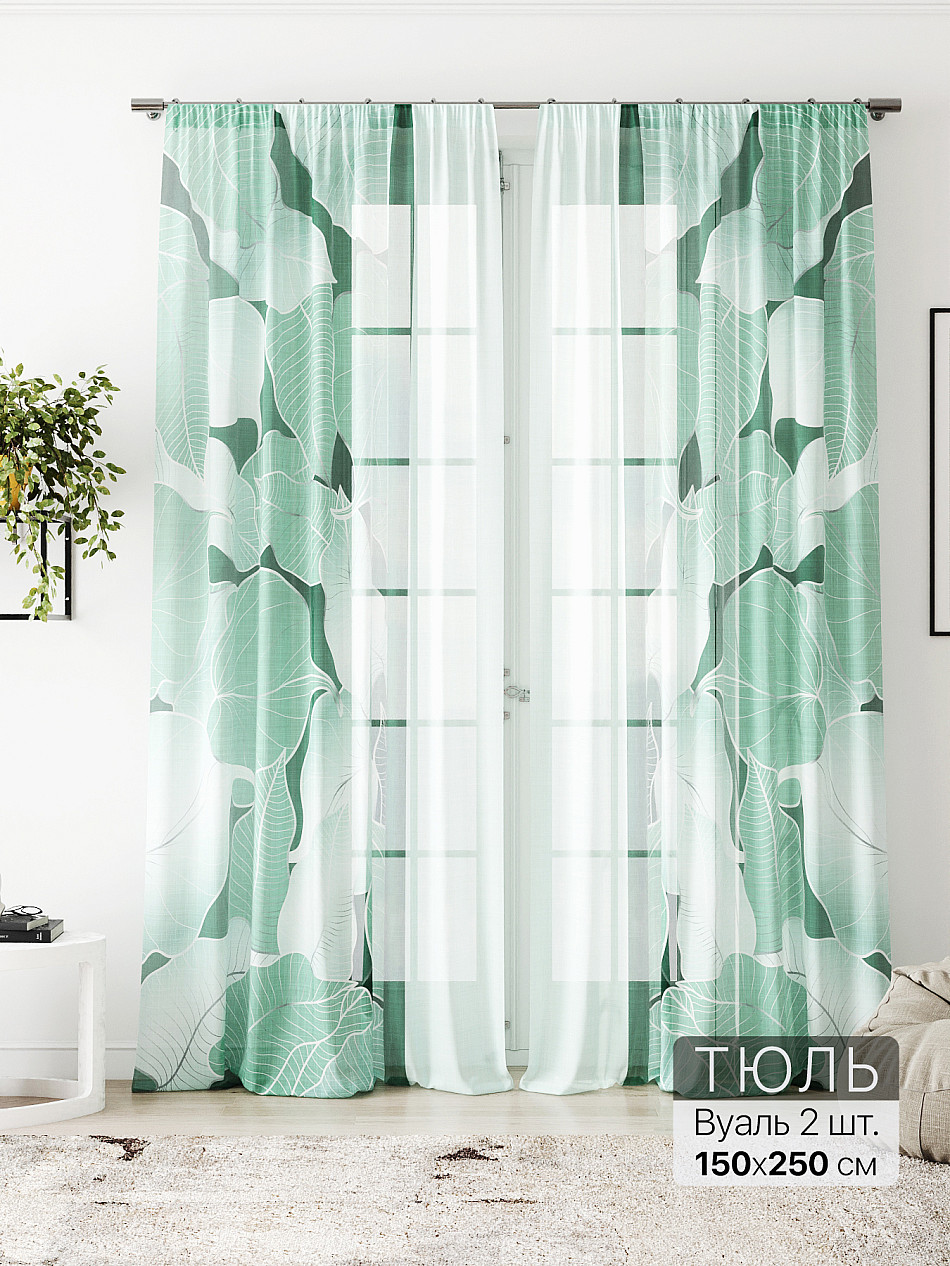 очень красивый тюль, в натуральном виде зеленый цвет более нежный, сама штора белоснежная. пошив очень аккуратный, шторная лента плотная. покупкой довольна -