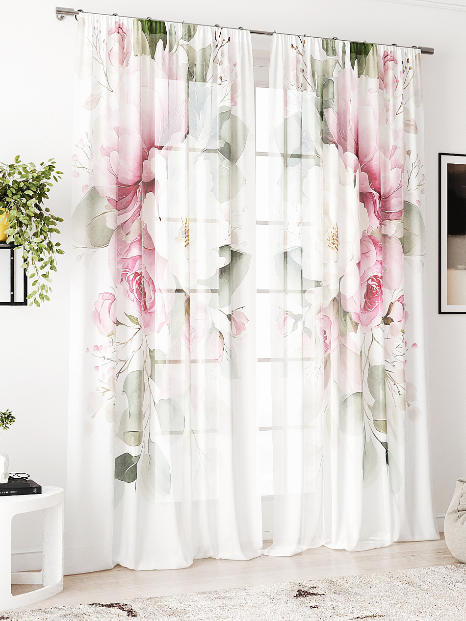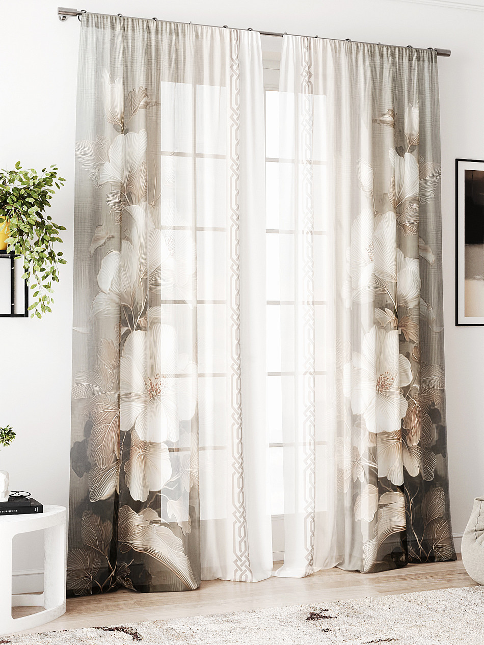 Сам тюль очень красивый,фон серый,розы белоснежные.Пропускает очень много света.И пошив качественный. -