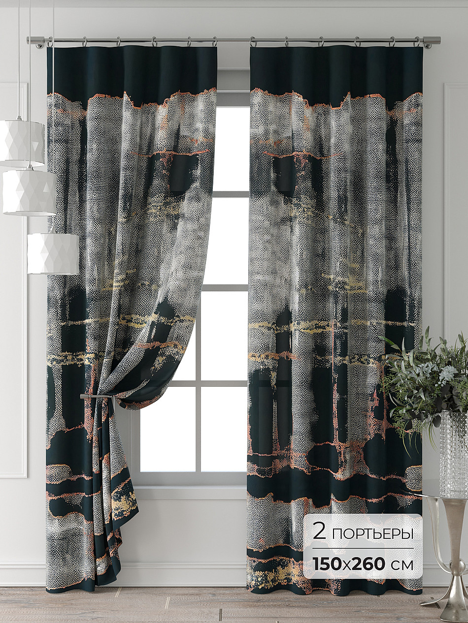 Очень эффектная портьера, смотрится великолепно, изыскано. Хорошо затемняет, свет с улицы не проходит. Цвет почти как на фото. Ложится красивыми складками. Сшита аккуратно. Я довольна, что выбрала её. Спасибо производителю. -