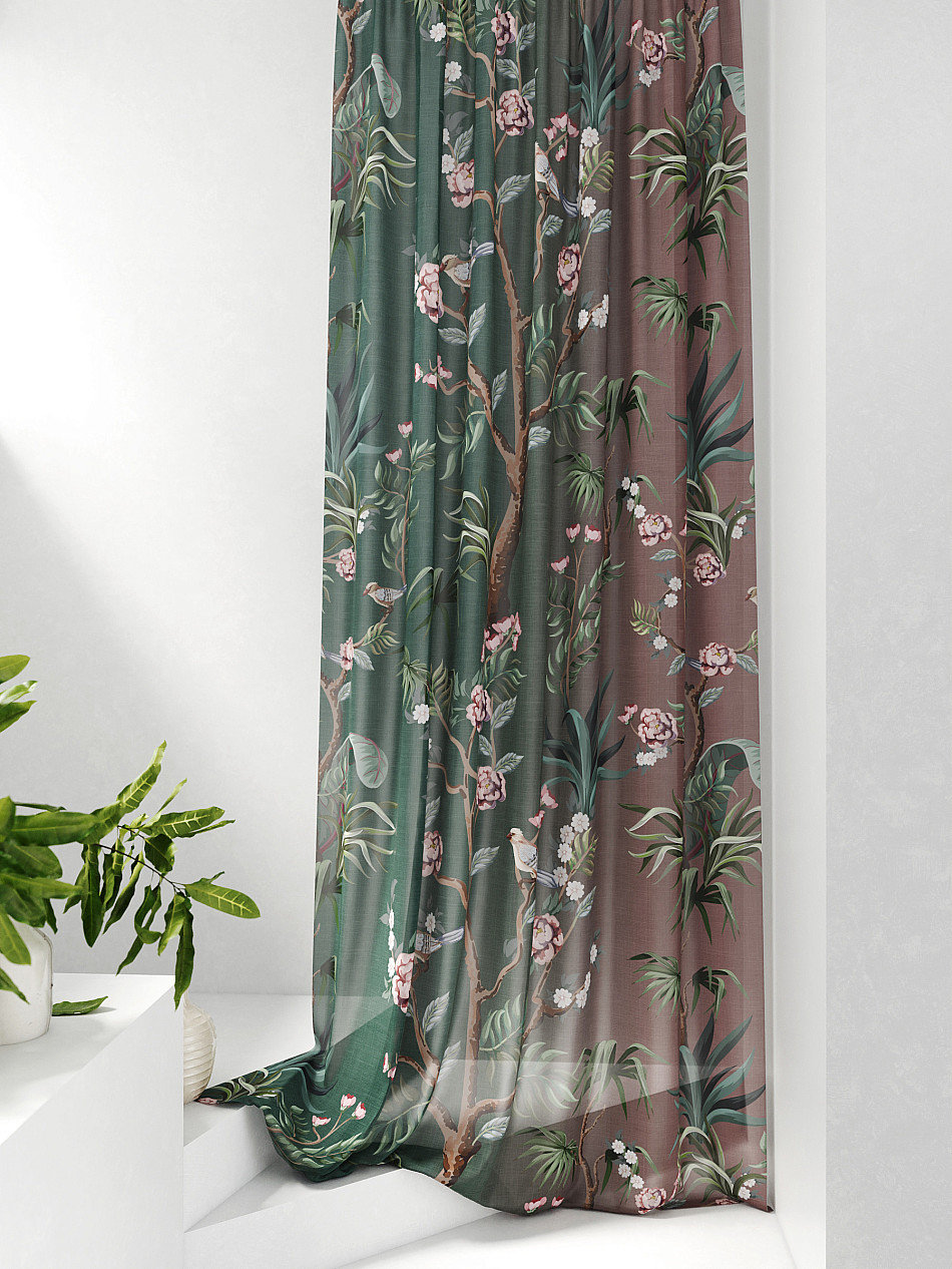 очень красивый тюль, в натуральном виде зеленый цвет более нежный, сама штора белоснежная. пошив очень аккуратный, шторная лента плотная. покупкой довольна -