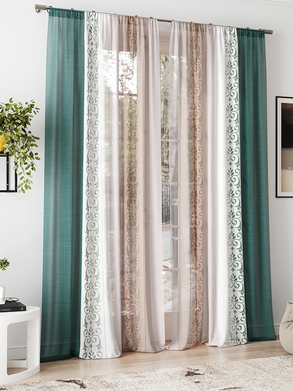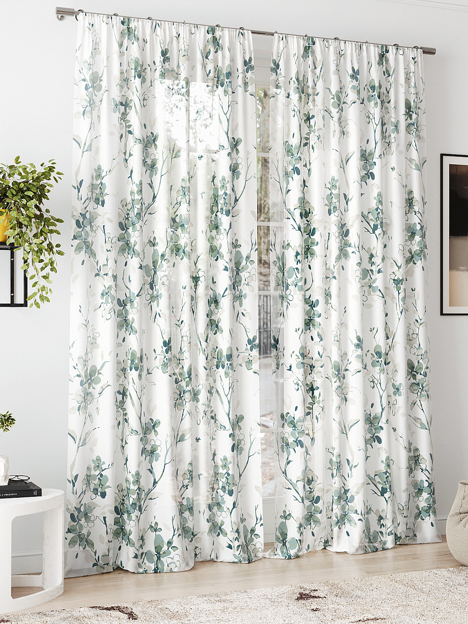 очень красивый тюль, в натуральном виде зеленый цвет более нежный, сама штора белоснежная. пошив очень аккуратный, шторная лента плотная. покупкой довольна -