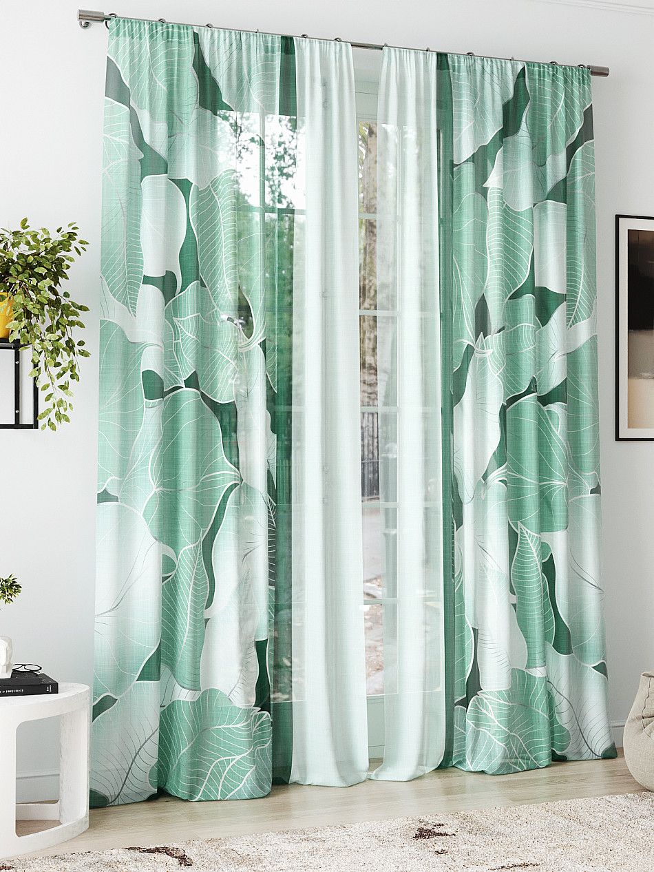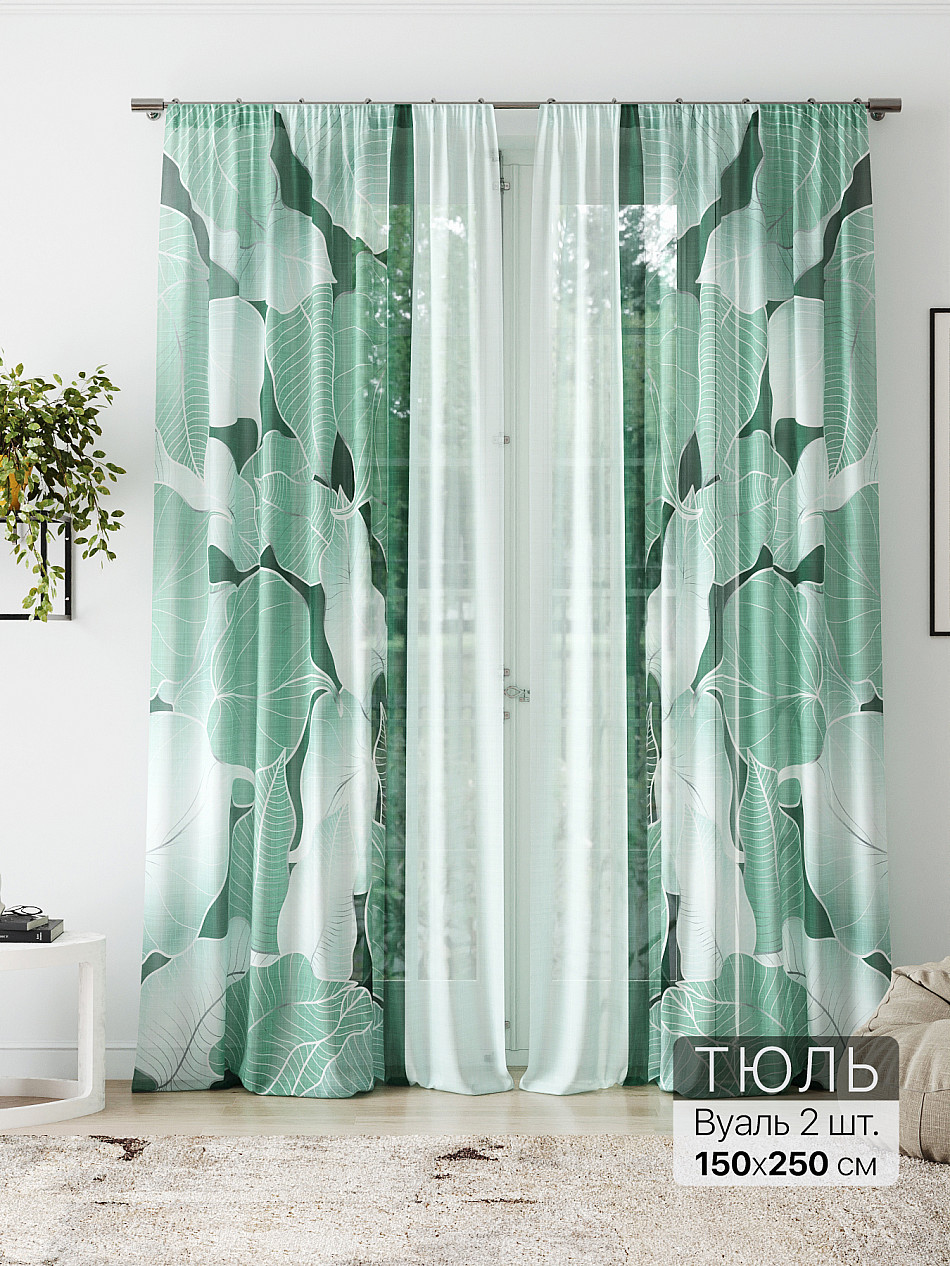 очень красивый тюль, в натуральном виде зеленый цвет более нежный, сама штора белоснежная. пошив очень аккуратный, шторная лента плотная. покупкой довольна