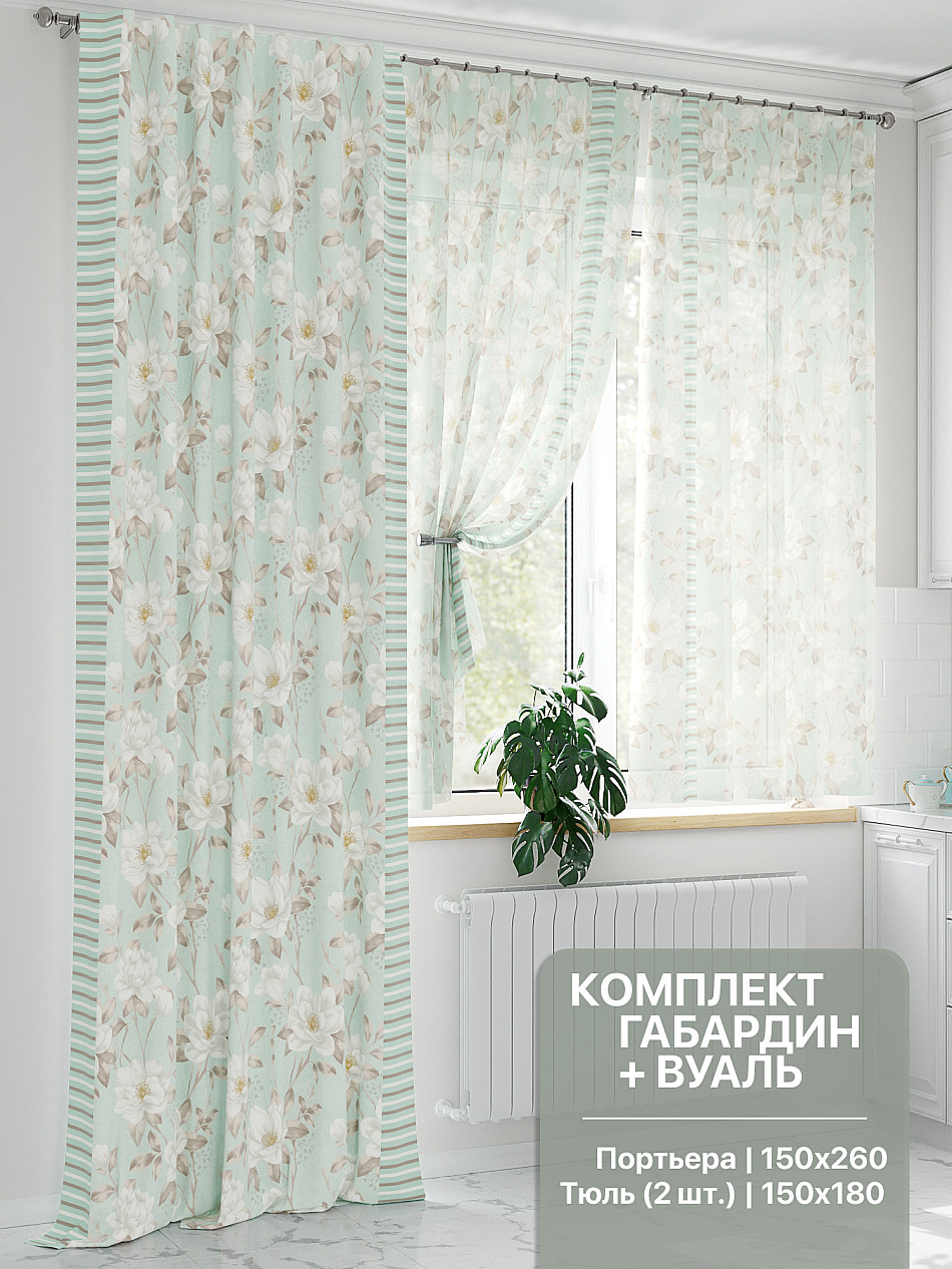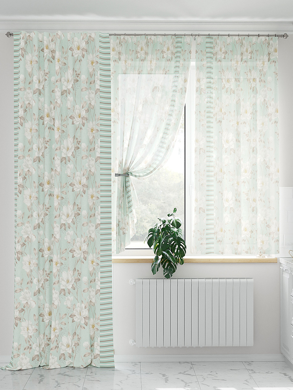 В фоне больше зелено-голубого, чем бежевого, как кажется на фото. Нам этот вариант даже больше подошел. Портьера не плотная ( не рапс). -