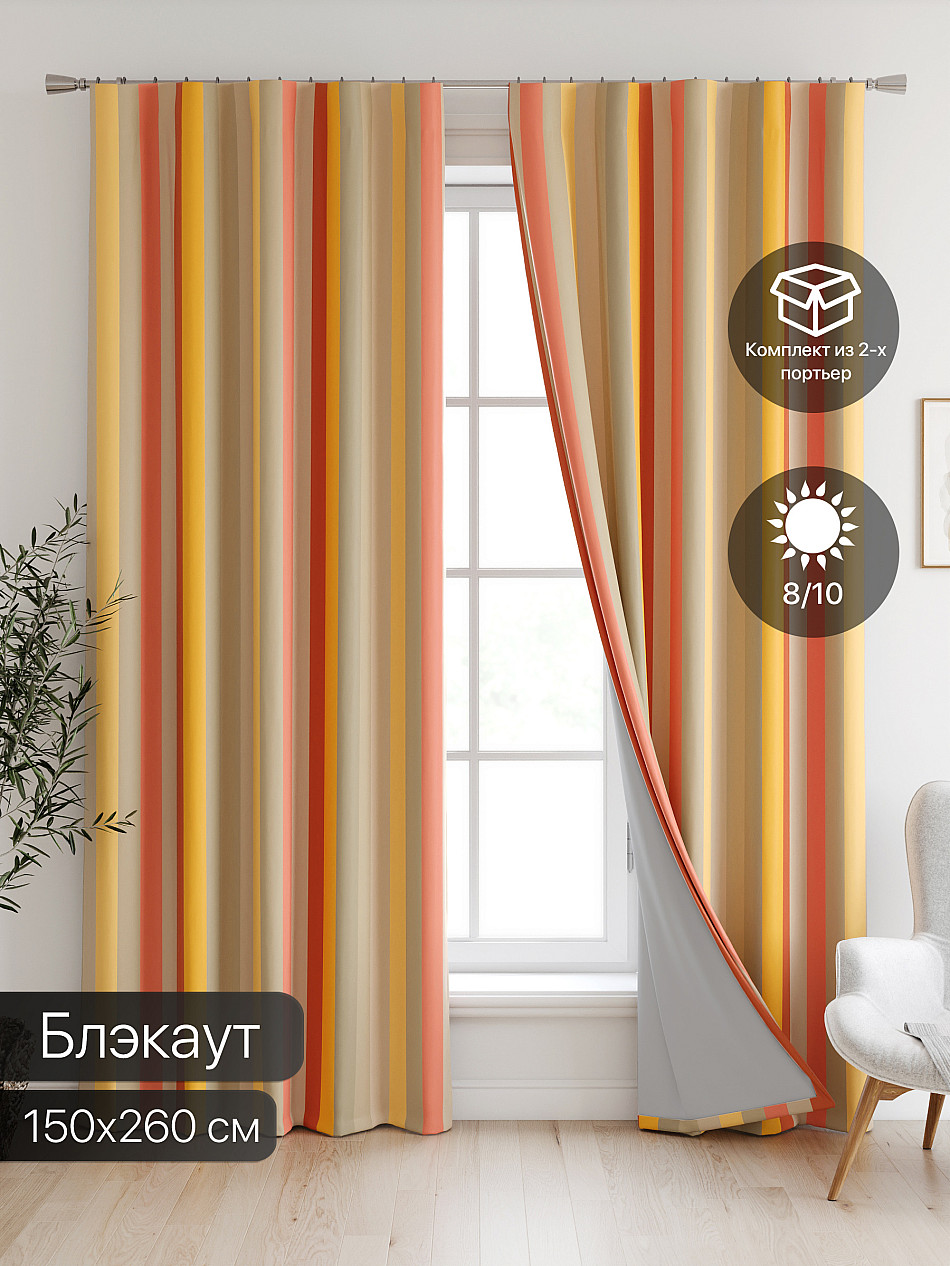 Замечательная портьера, заказывала дочке в комнату, у нее солнечная сторона. Портьеры хорошо задерживают УФ лучи. Затемнение при ярком солнце хорошее. -