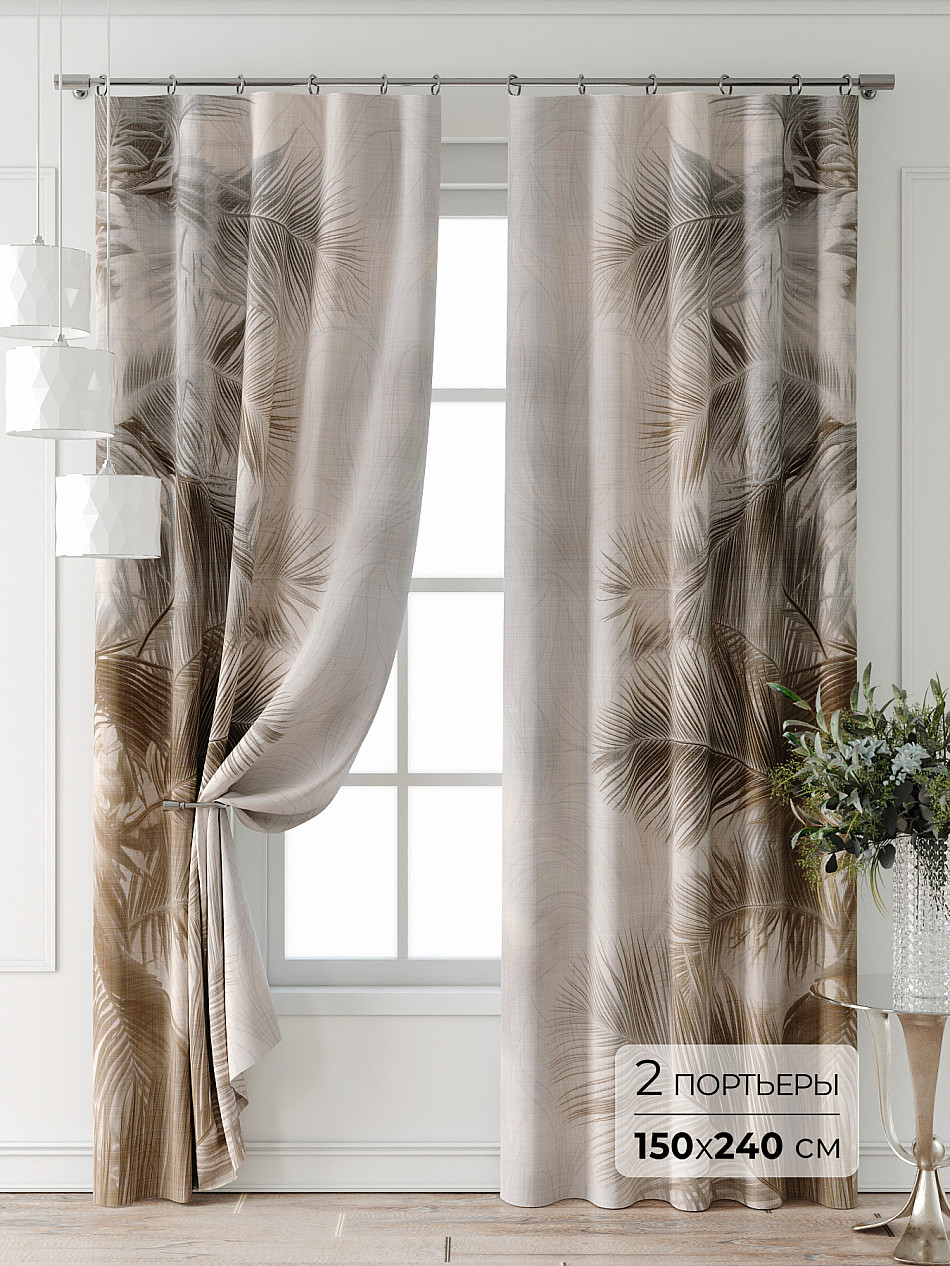 Очень эффектная портьера, смотрится великолепно, изыскано. Хорошо затемняет, свет с улицы не проходит. Цвет почти как на фото. Ложится красивыми складками. Сшита аккуратно. Я довольна, что выбрала её. Спасибо производителю.