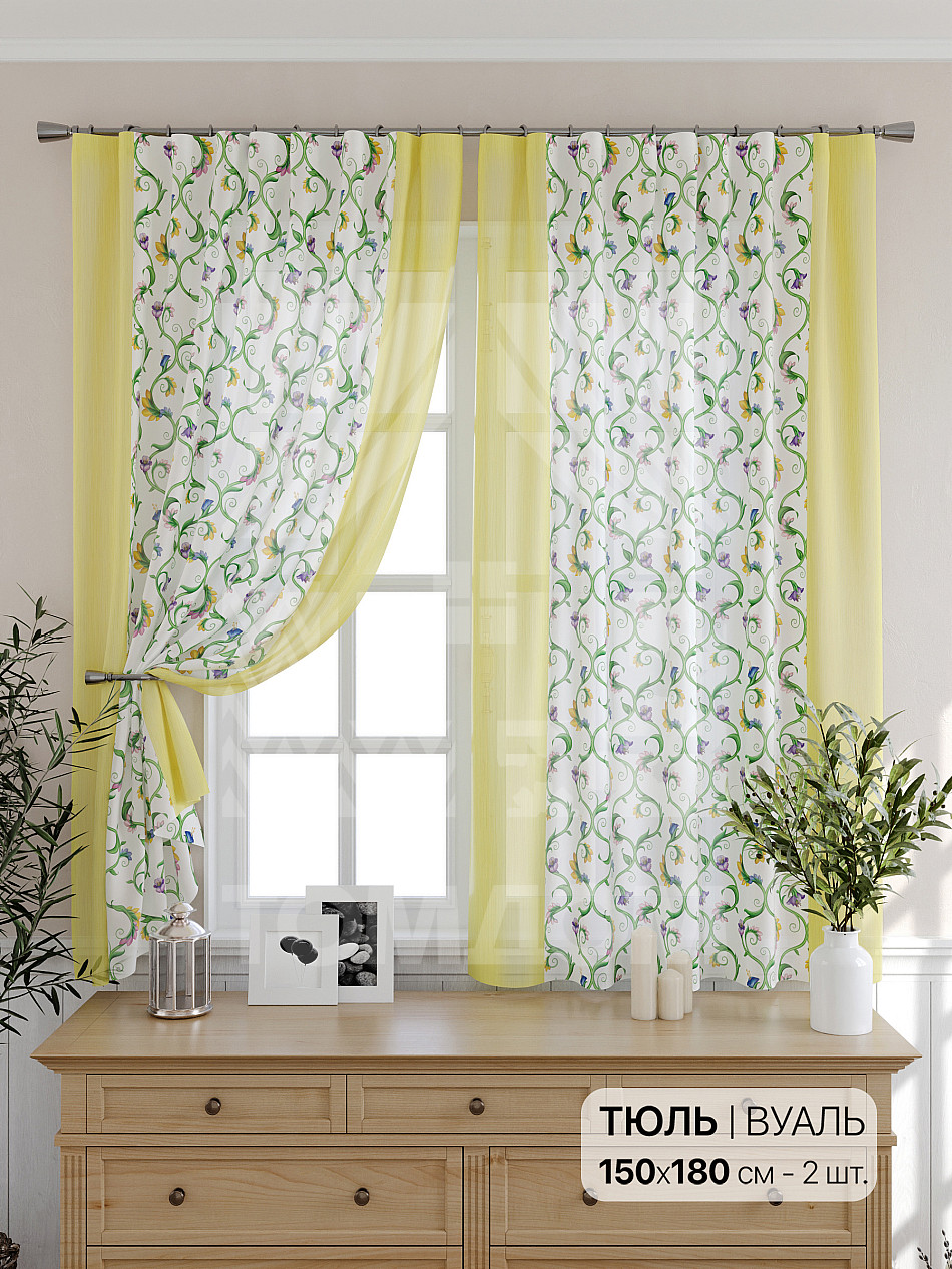 В детскую заказала тюль высотой 180, При получении она показалась более серая, но когда повесили её, она преобразилась. Детям нравится, а это главное.