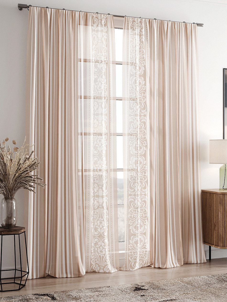 Очень понравился тюль. Благородная полоска, неяркие цвета, чуть приглушенные. Тюль воздушный, очень прозрачный. Качество исполнения на высоте. Спасибо магазину. -