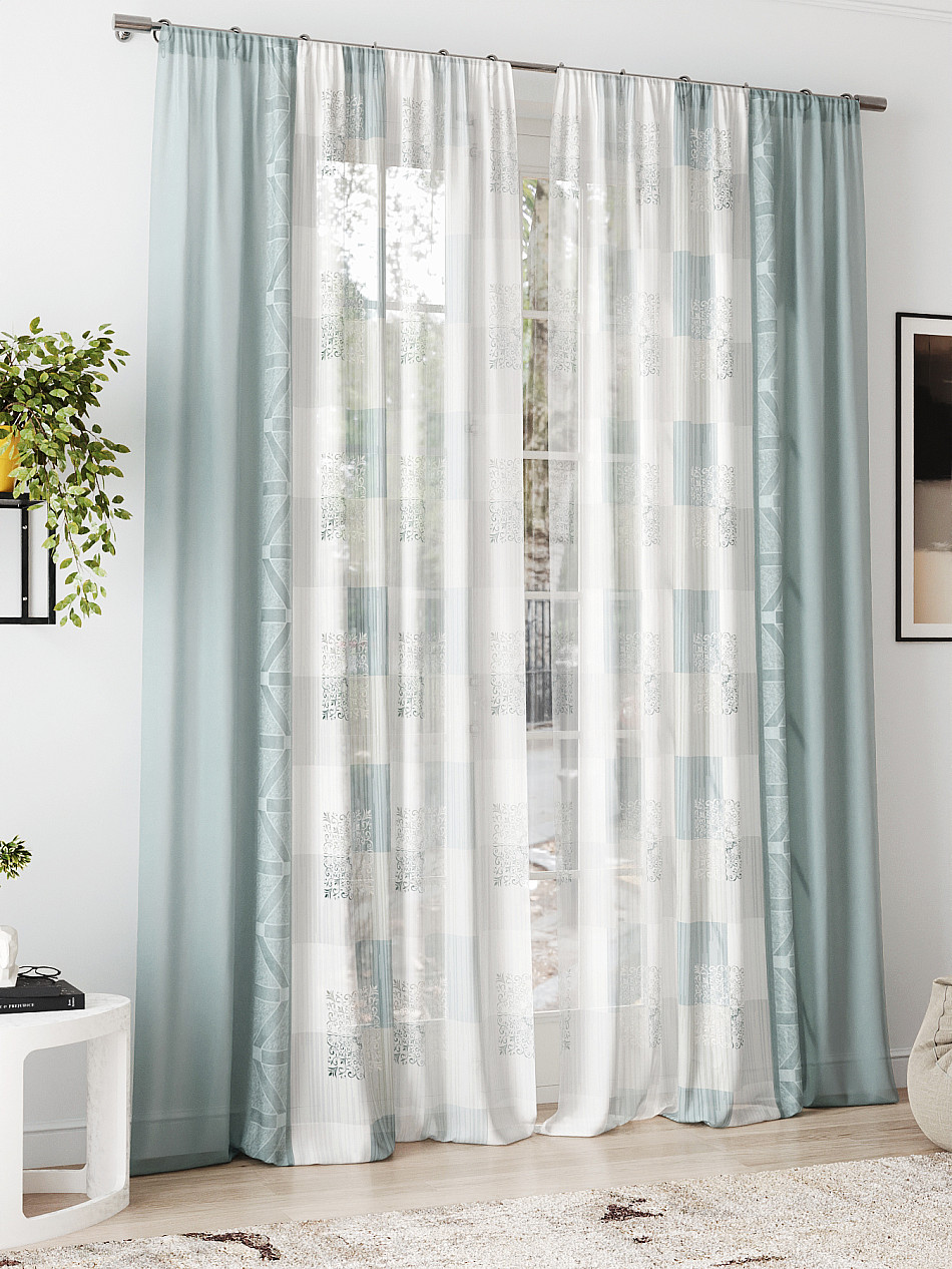 очень красивый тюль, в натуральном виде зеленый цвет более нежный, сама штора белоснежная. пошив очень аккуратный, шторная лента плотная. покупкой довольна -