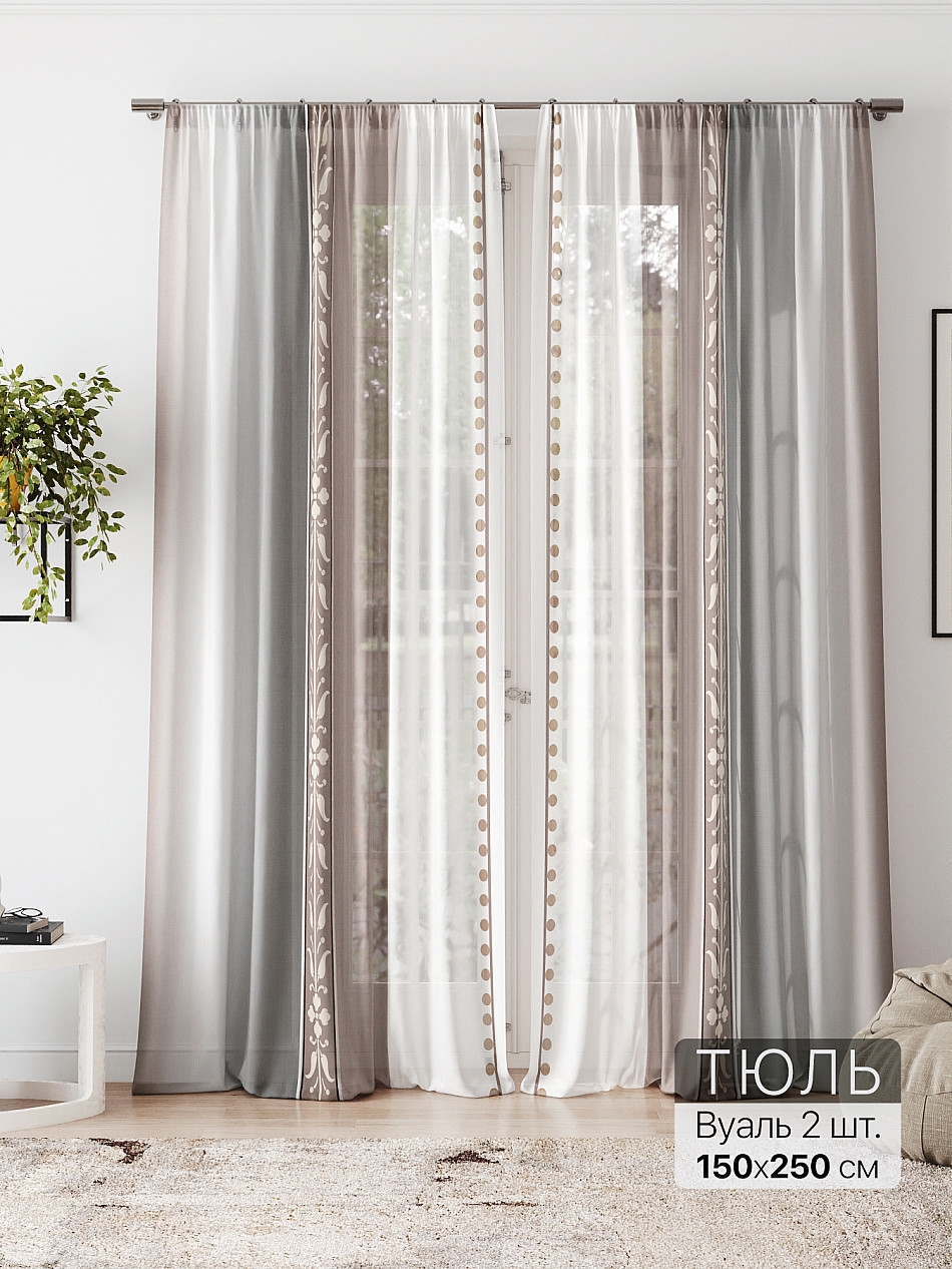 Спасибо за портьеры Бронис(бежево-серый)Цвет полностью совпадает с заявленным!Все сшито качественно.Ткань чудесная для портьер!Спасибо менеджерам по работе с Клиентами-внимательные,профессиональные!Небольшой минус-каждая портьера на 5см меньше заявленных300см.А в остальном,все хорошо -